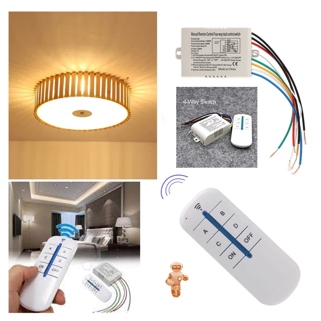 Controle Remoto de Luz 4 vias - Sem Fio - BIVOLT - Interruptor Portátil