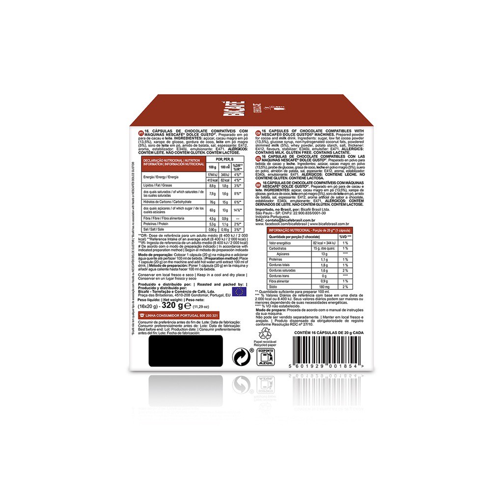 Cápsula De Chocolate Bicafé P/ Máquinas Dolce Gusto*