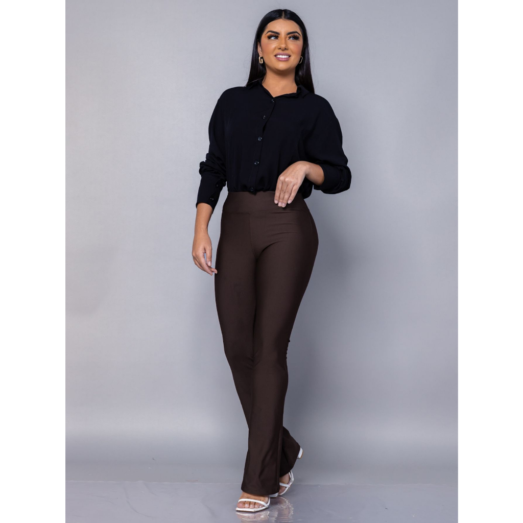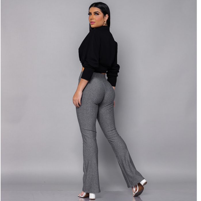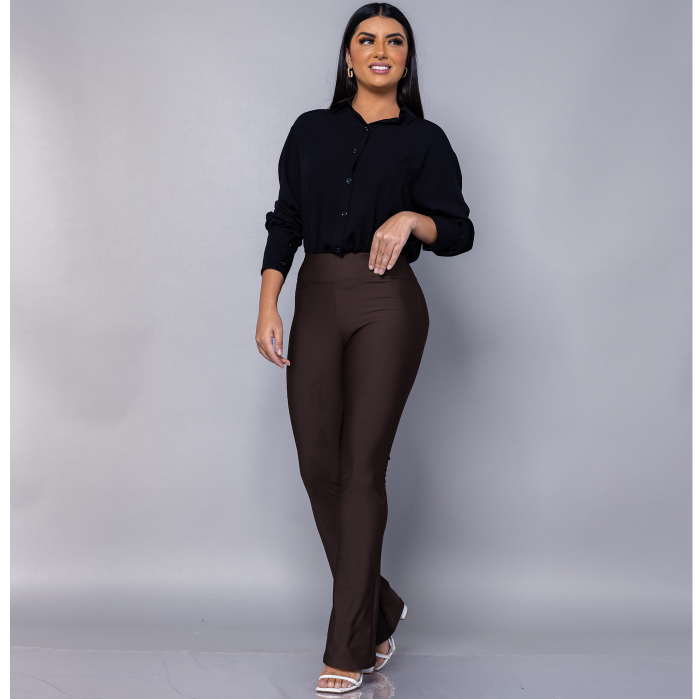 Calça Flare Bailarina Flanelada Premium Cintura Alta