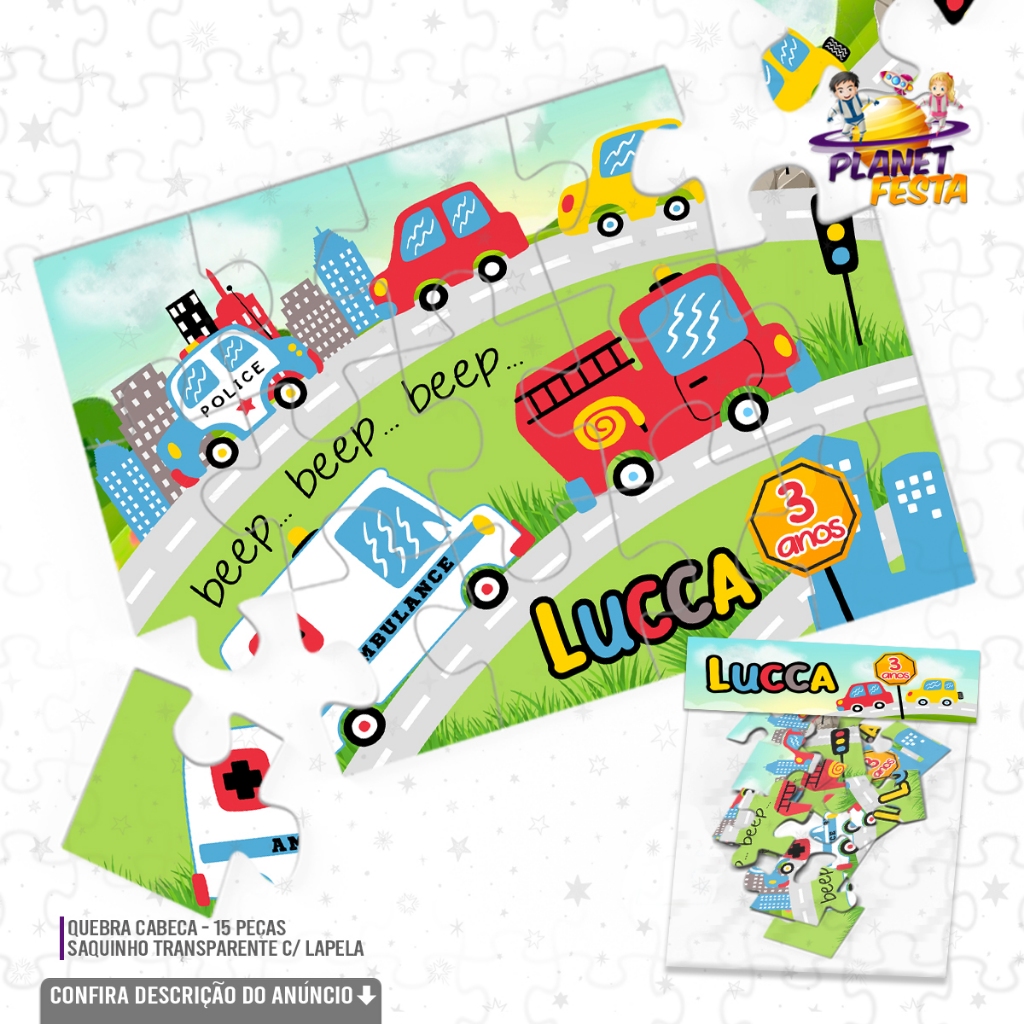 Quebra Cabeça Lembrancinha Personalizada Para Festa - Carrinhos Meios de Transporte