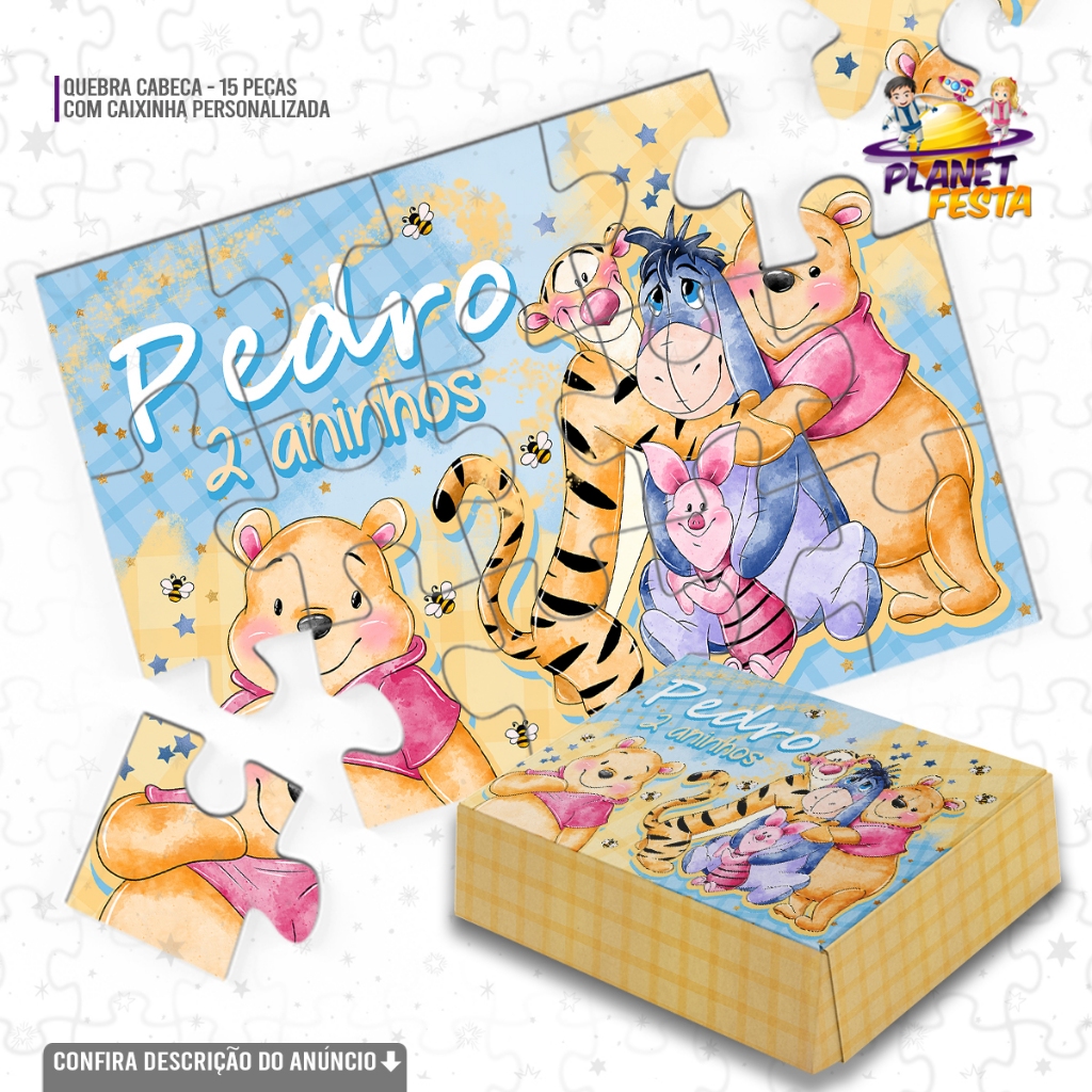 Quebra Cabeça + Caixinha Lembrancinha Personalizada Para Festa - Ursinho Pooh