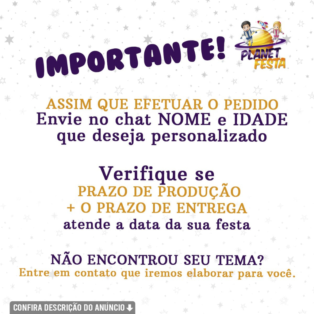 Sob encomenda: envio após 3 dias da compra