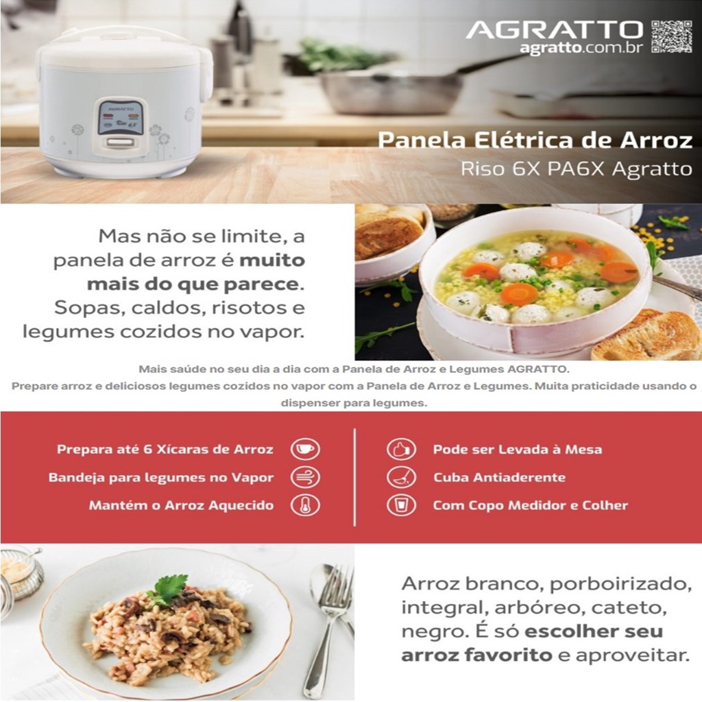 Panela Elétrica De Arroz E Legumes Riso 6 Xícaras - Agratto