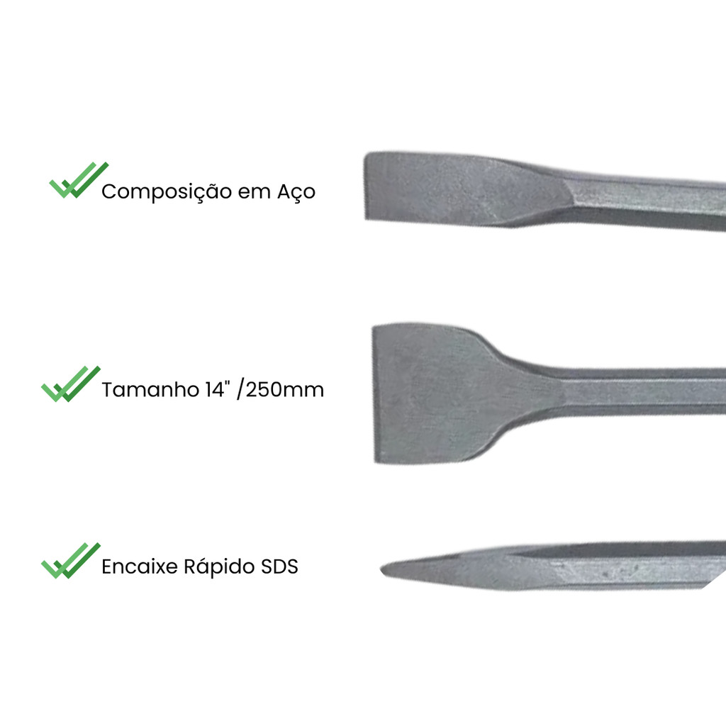 Kit 03 PCS Ponteira + Talhadeira P/Martelete 14° 250mm