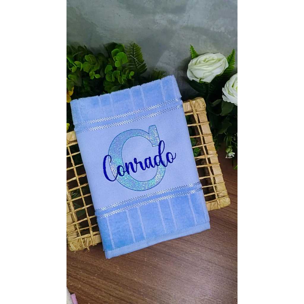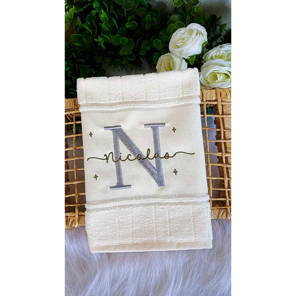 Toalha de boca Bordada Com Nome e Letra Escolar Lavabo Bebê Dohler Personalizada