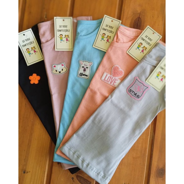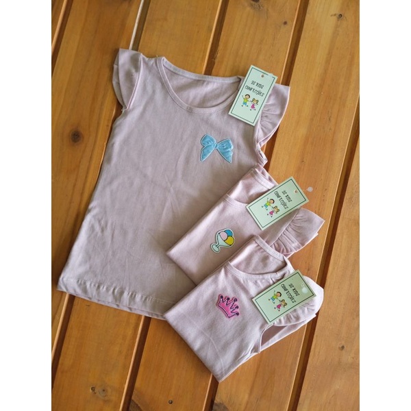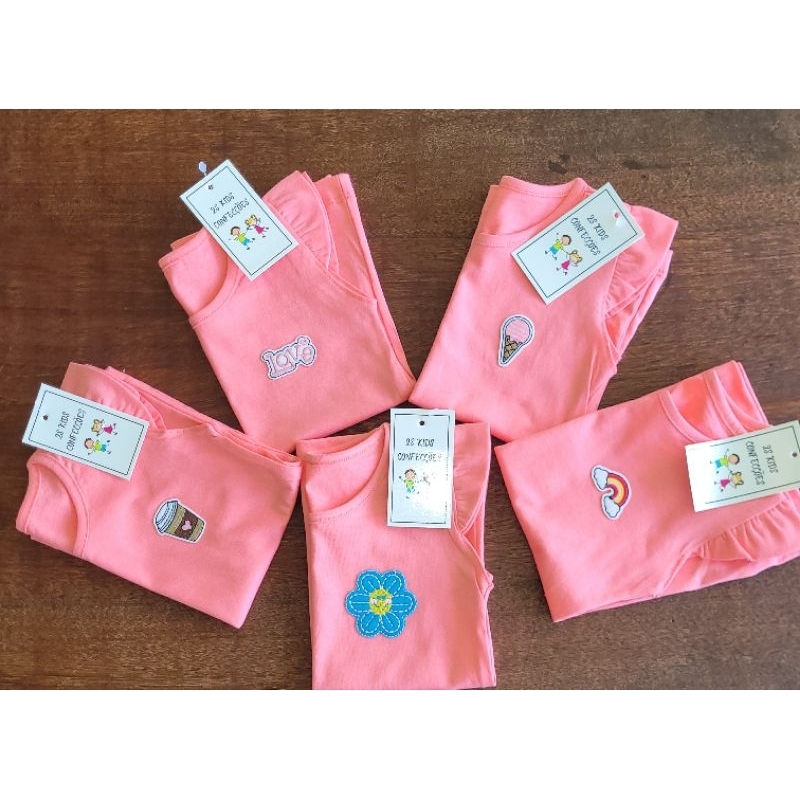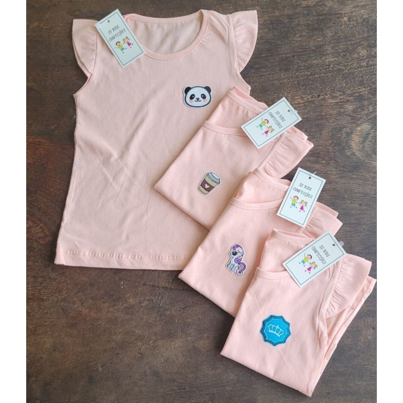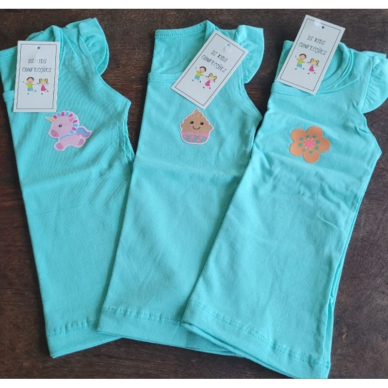 Kit sortido 3 Blusa Verão Menina Manga Curta Franzida Infantil