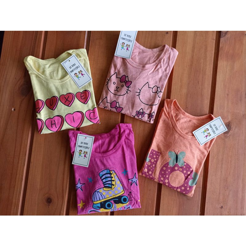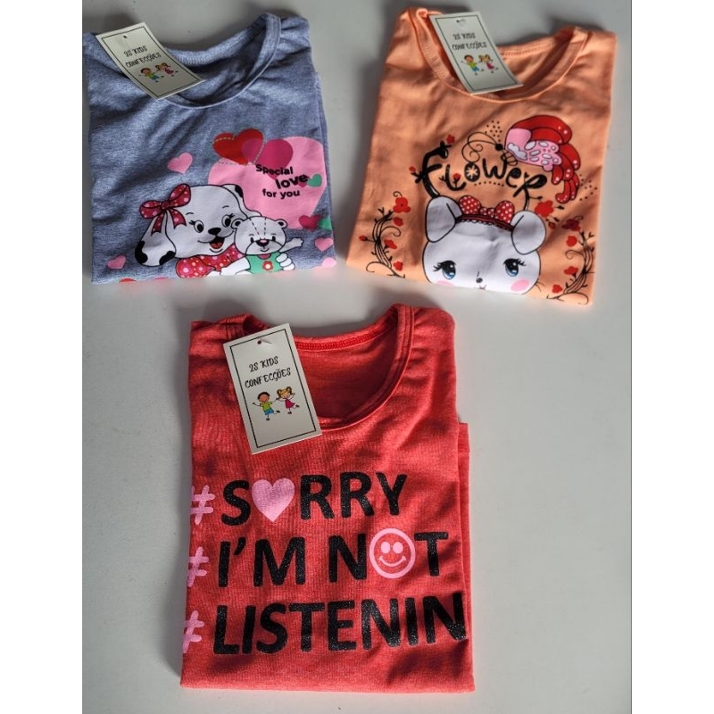 Kit sortido 3 Camiseta Menina Infantil Juvenil Manga Longa