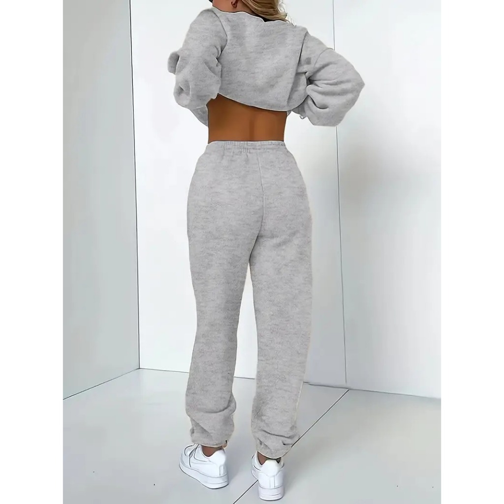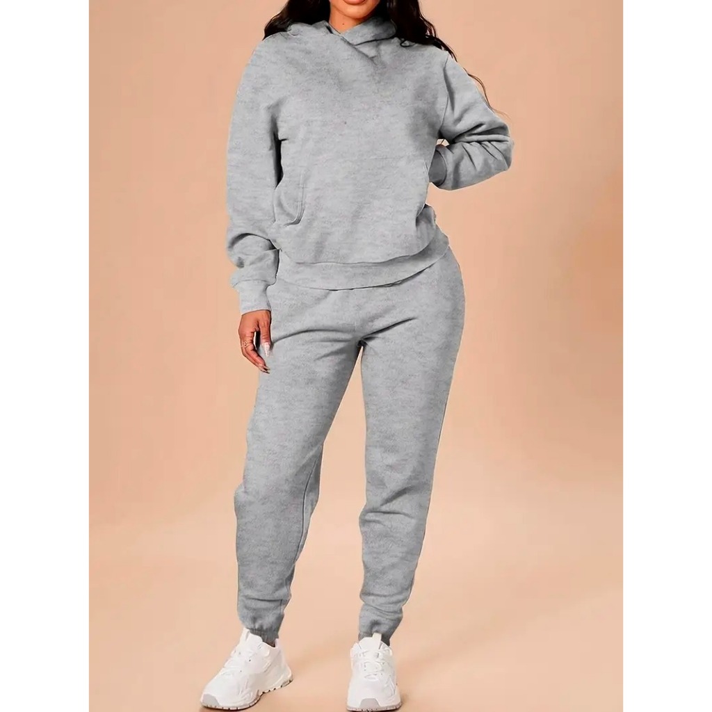 Conjunto de Moletom Canguru Capuz Bolso Liso + Calça Feminino Masculino Algodão Unissex