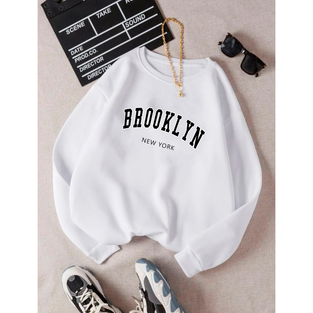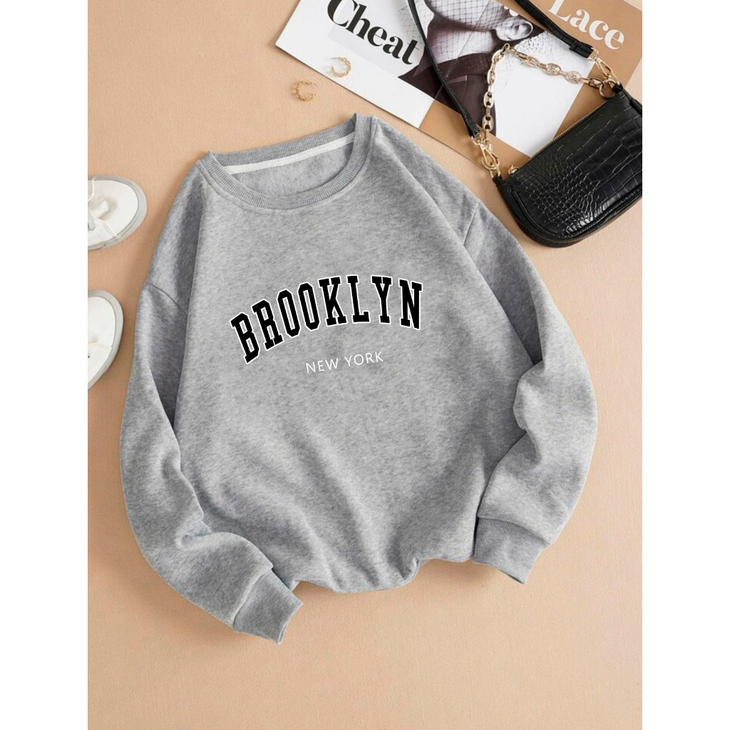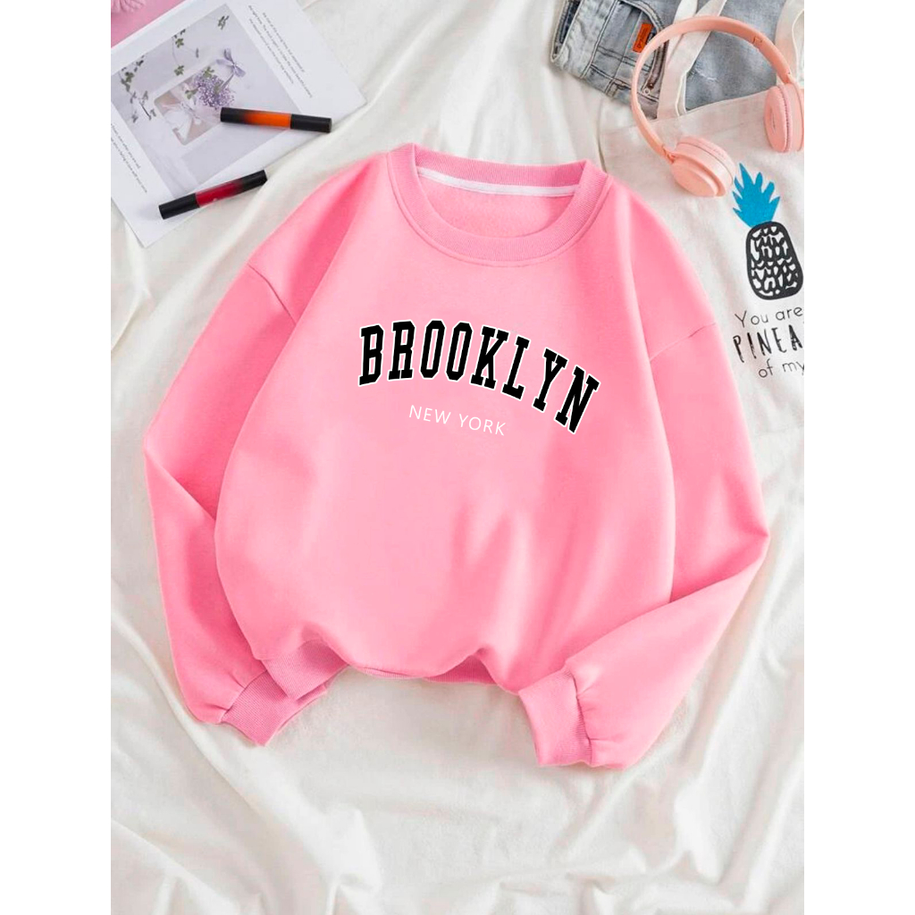 Moletom Careca Brooklyn Gola Redonda Blusa Frio Básico Casaco Feminino Masculino Flanelado Algodão