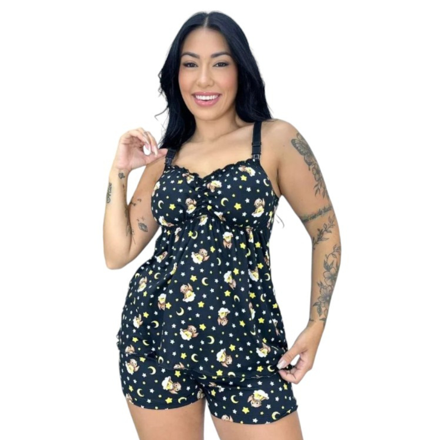 Baby Doll Amamentação Gestante pós parto Click Abre Fácil
