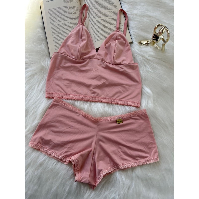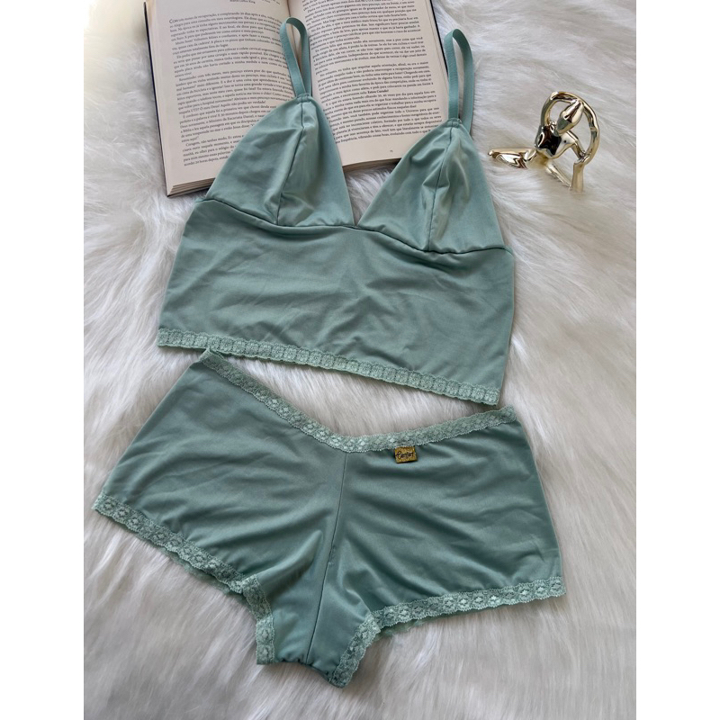 Baby doll Rafaela pijama feminino conforto conjunto caleçon e cropped espera marido