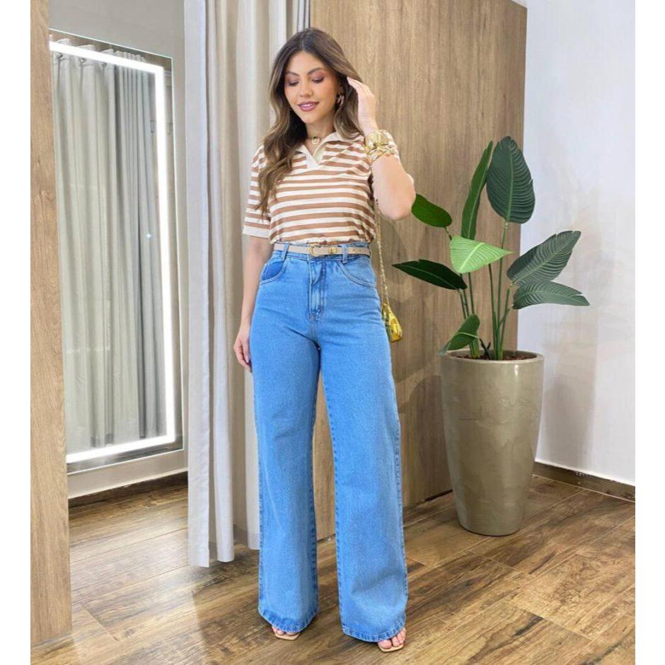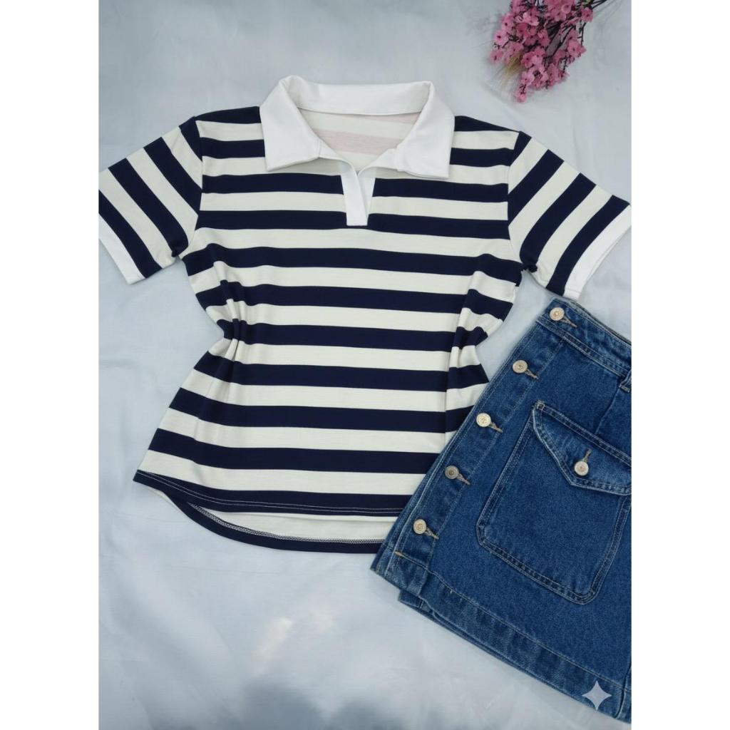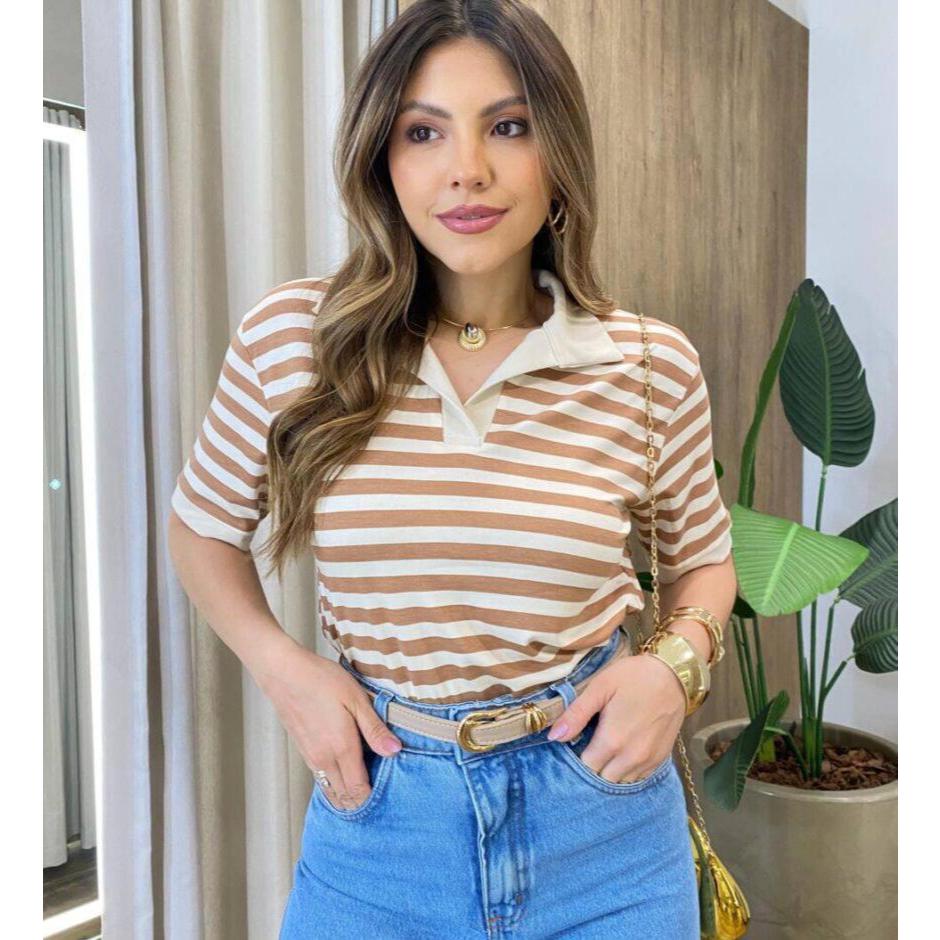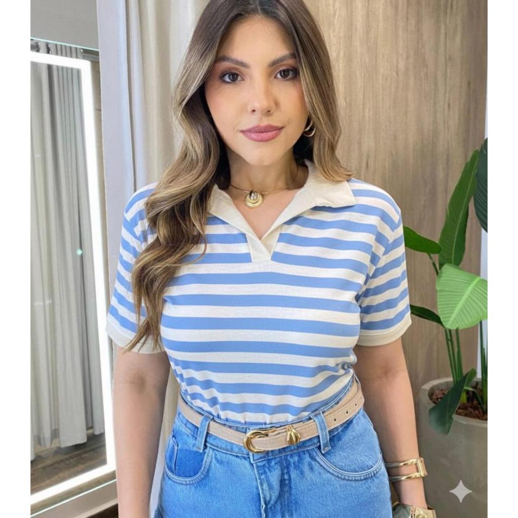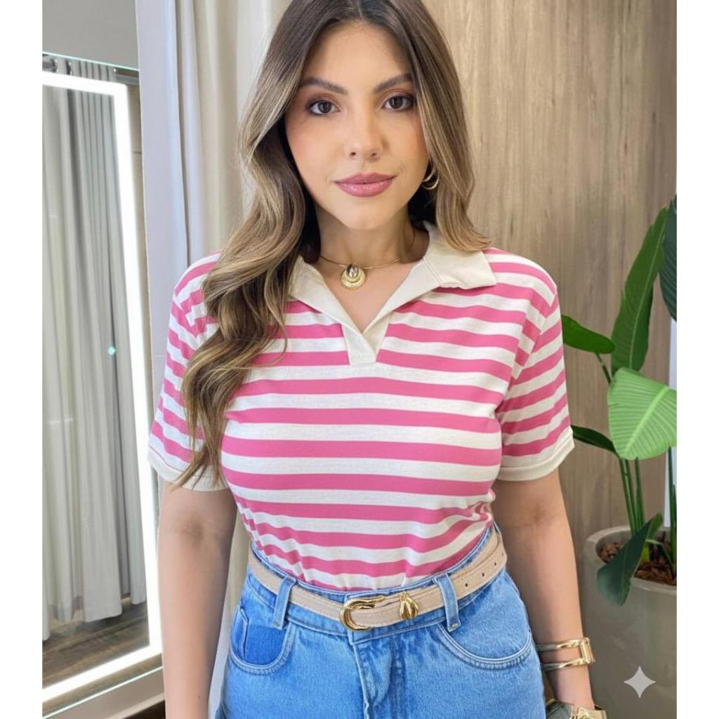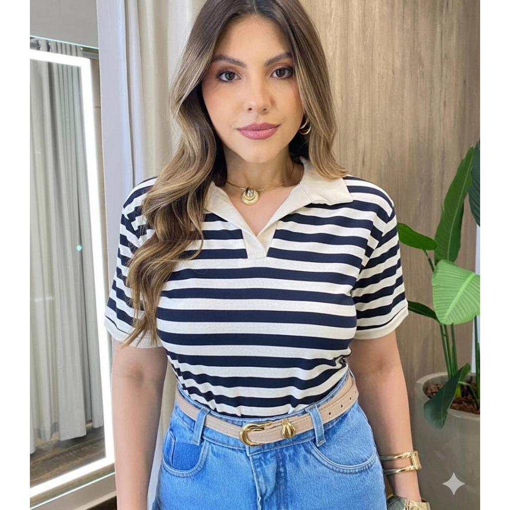 BLUSA CAMISETA FMININA POLO T SHIRT LISTRADA CASUAL DIA A DIA MALHA VISCOLYCRA BLOGUEIRA BASICA