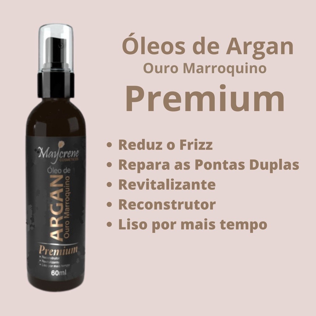 12 Óleos De Argan Maycrene 60ml - Reparador de Pontas Duplas, Revitalizante, Liso por mais tempo, Brilho e Anti frizz