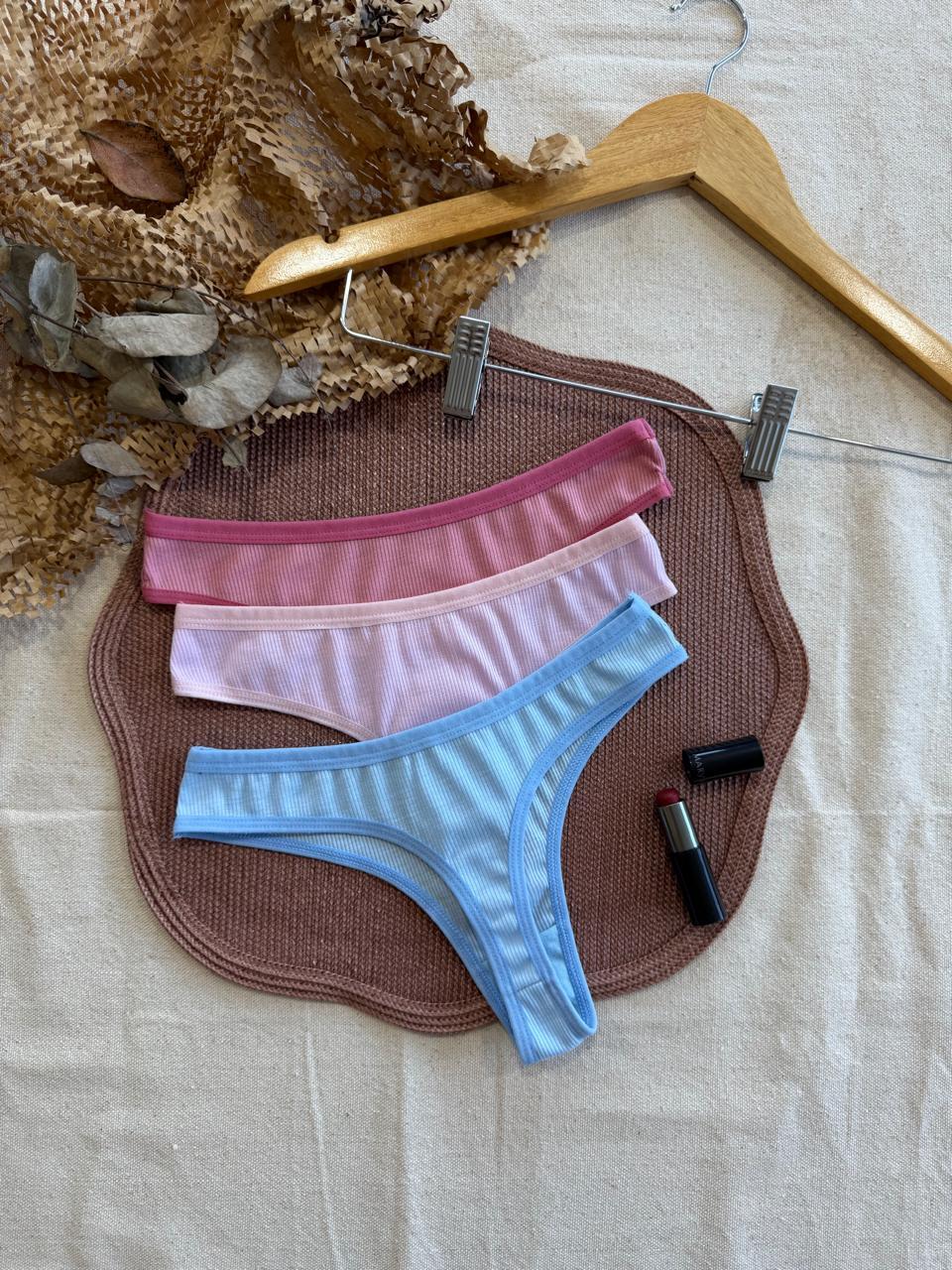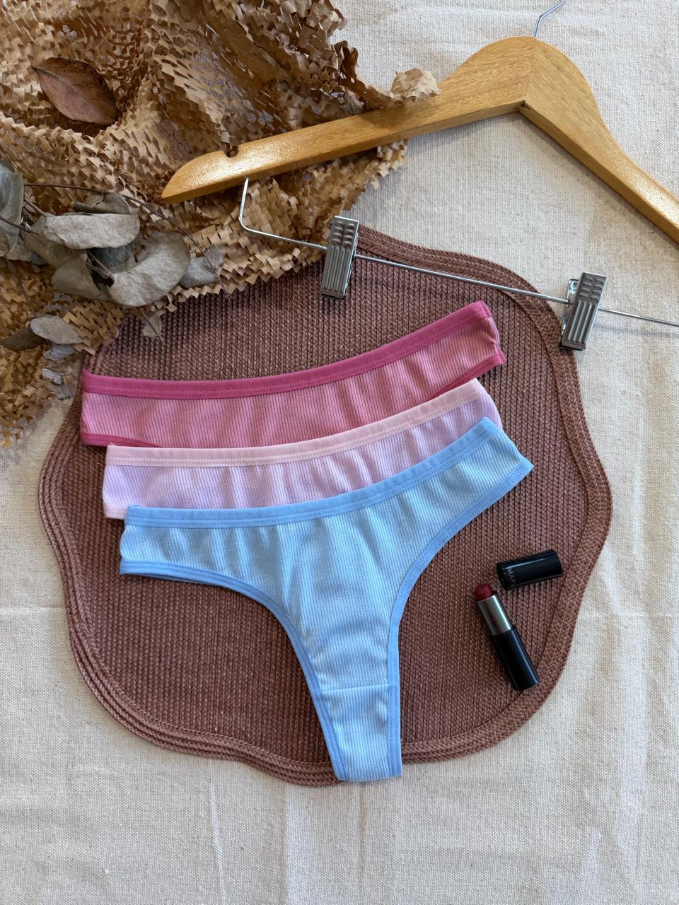 Kit 5 Calcinhas Caneladas Fio Dental em Suede estilo Algodão
