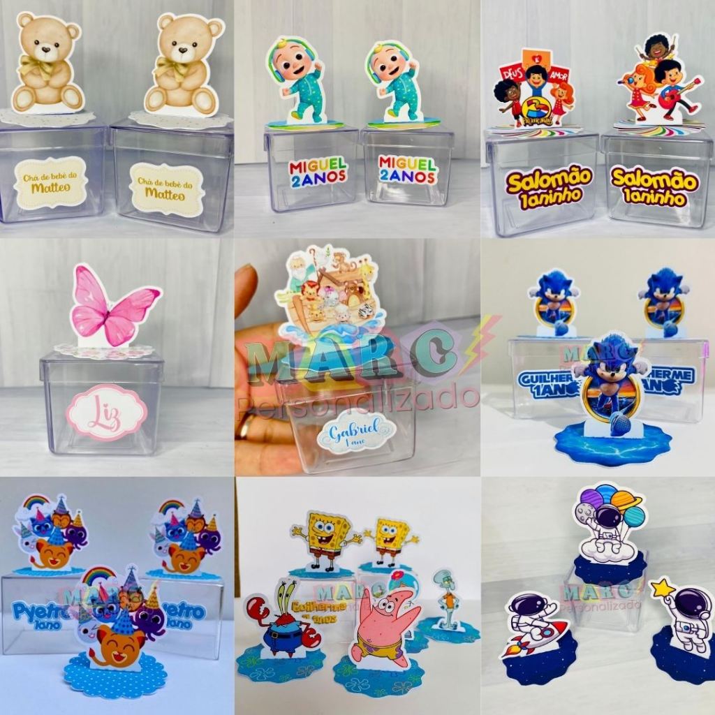 Aplique 3d Enfeite para Caixinha Acrílica 5x5 ou latinha 5x5 Lembrancinha (Peça aqui sua arte ) Diversos temas na loja