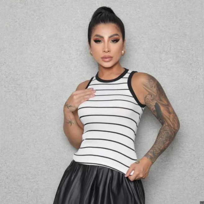 Blusa Regata Feminina Tecido Ribana Basica Tendência Blusinha Roupas Femininas