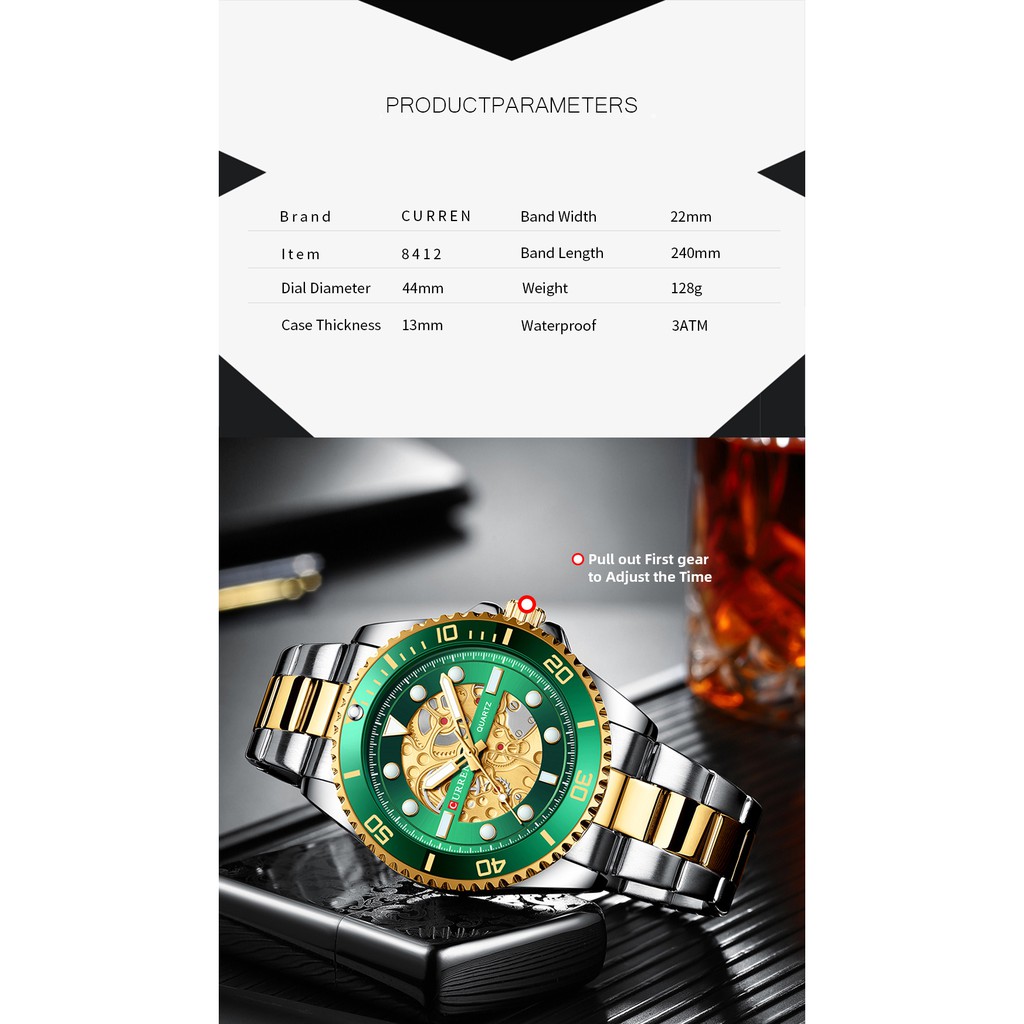 Relógios Masculinos CURREN Luxo Marca Original Casual à prova d'água Esporte Quartzo Relógio 8412S