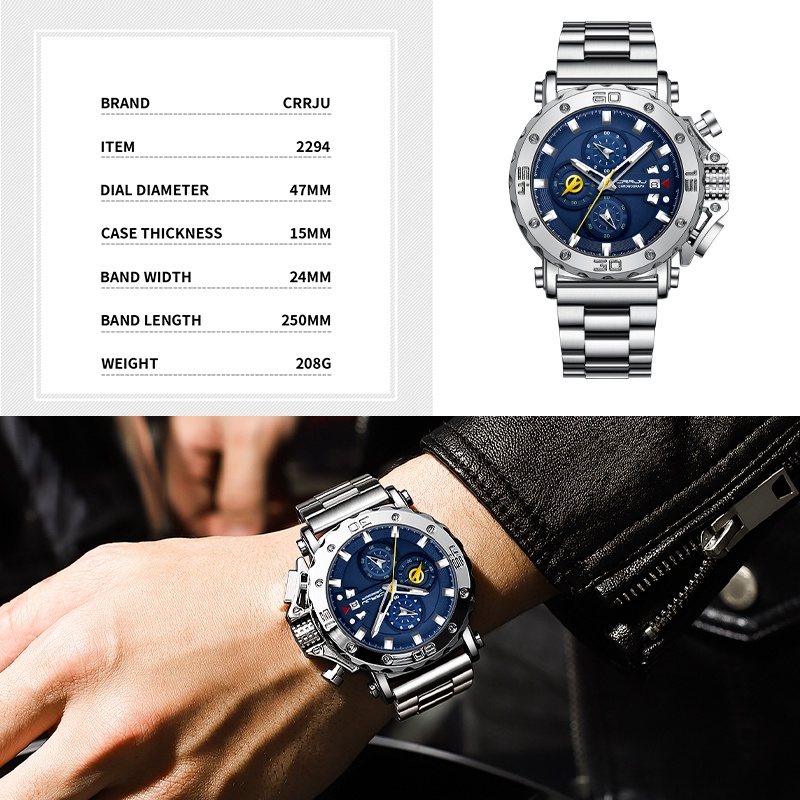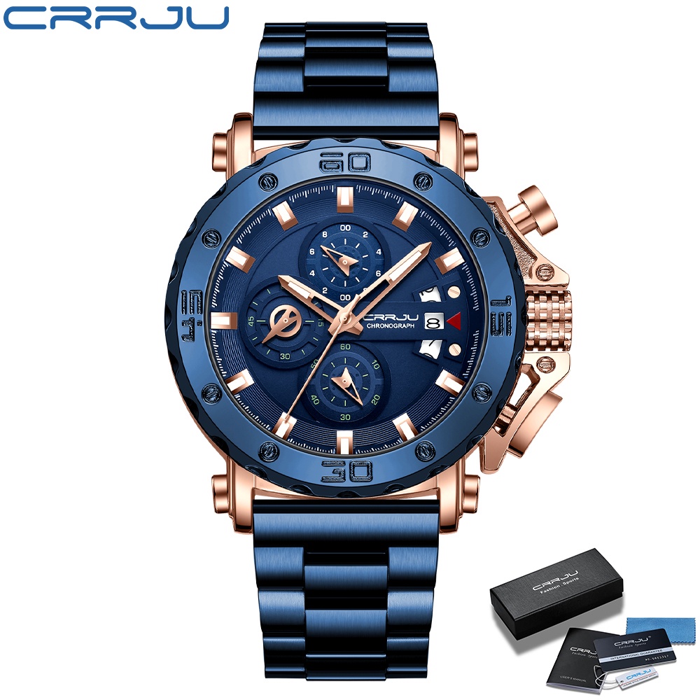 CRRJU Relógios Dos Homens Marca De Luxo Original Quartz Multifuncional À Prova D'água Militar Business Casual Sports 229