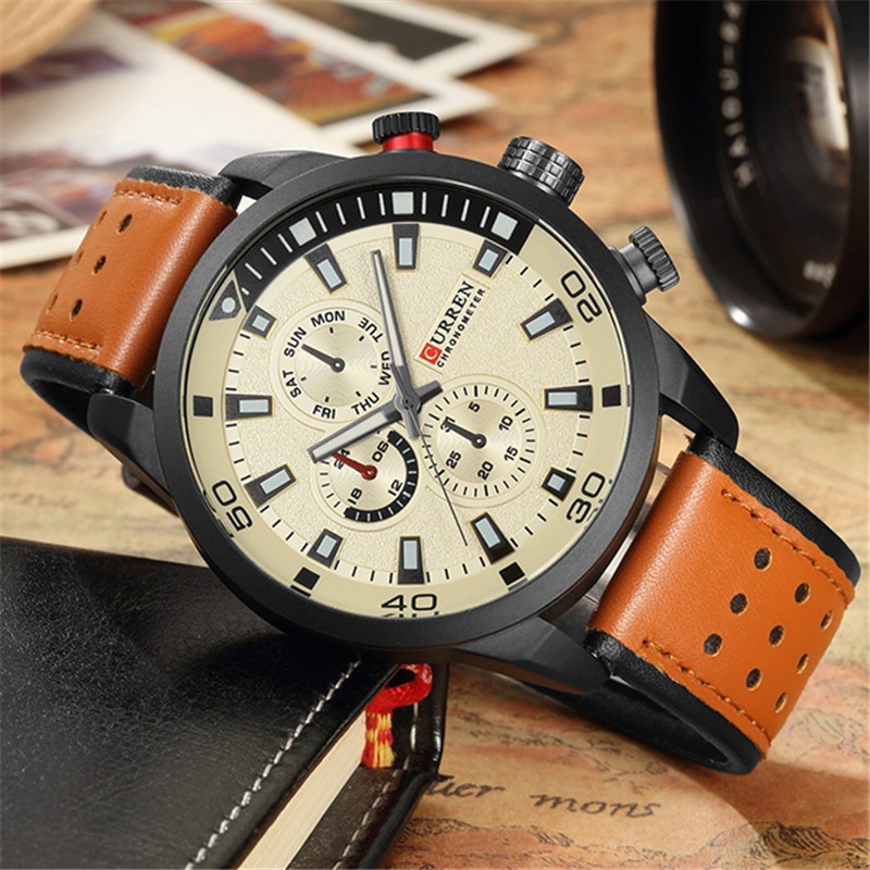 CURREN Relógio Masculino Moda Top Marca Luxo Original Quartzo Esportes Casual Couro Impermeável Negócios Militar Relógios Masculino 8250XQ
