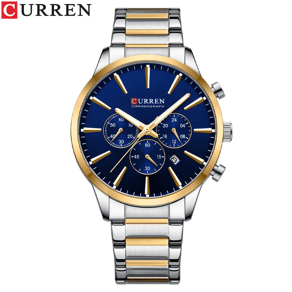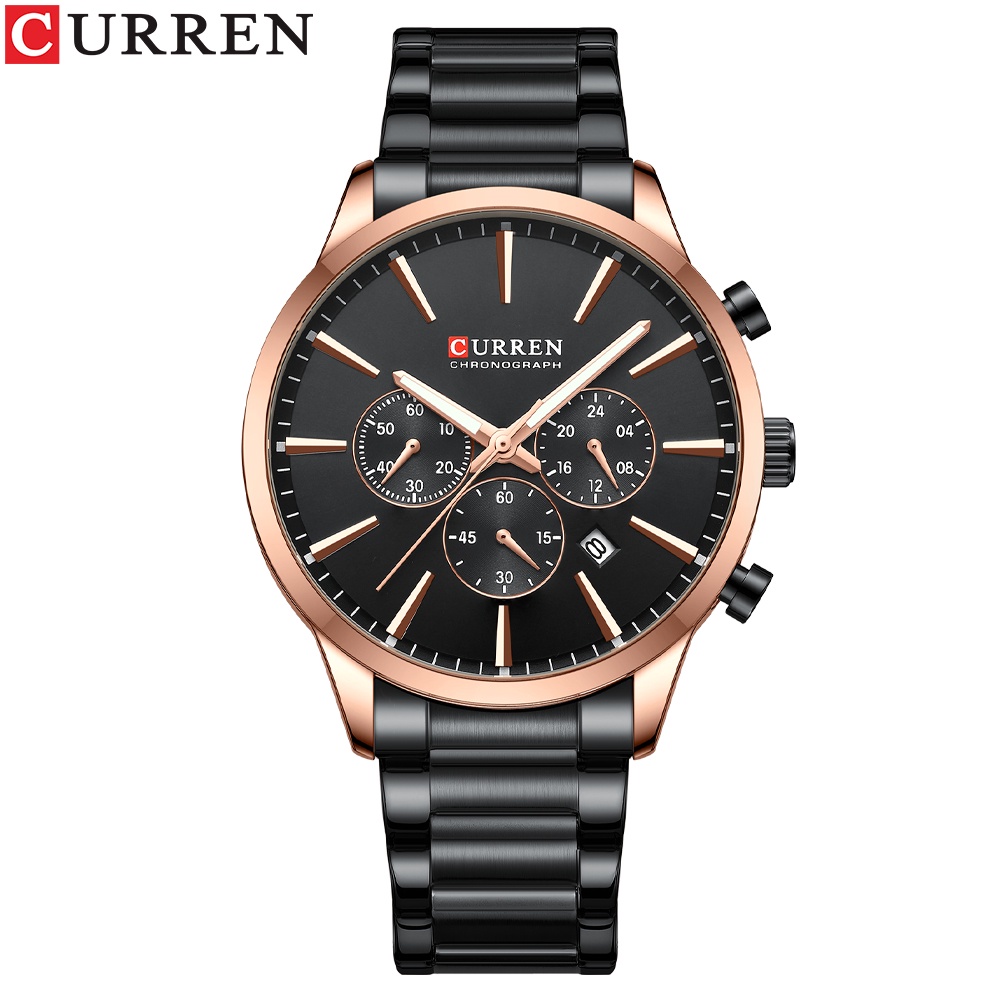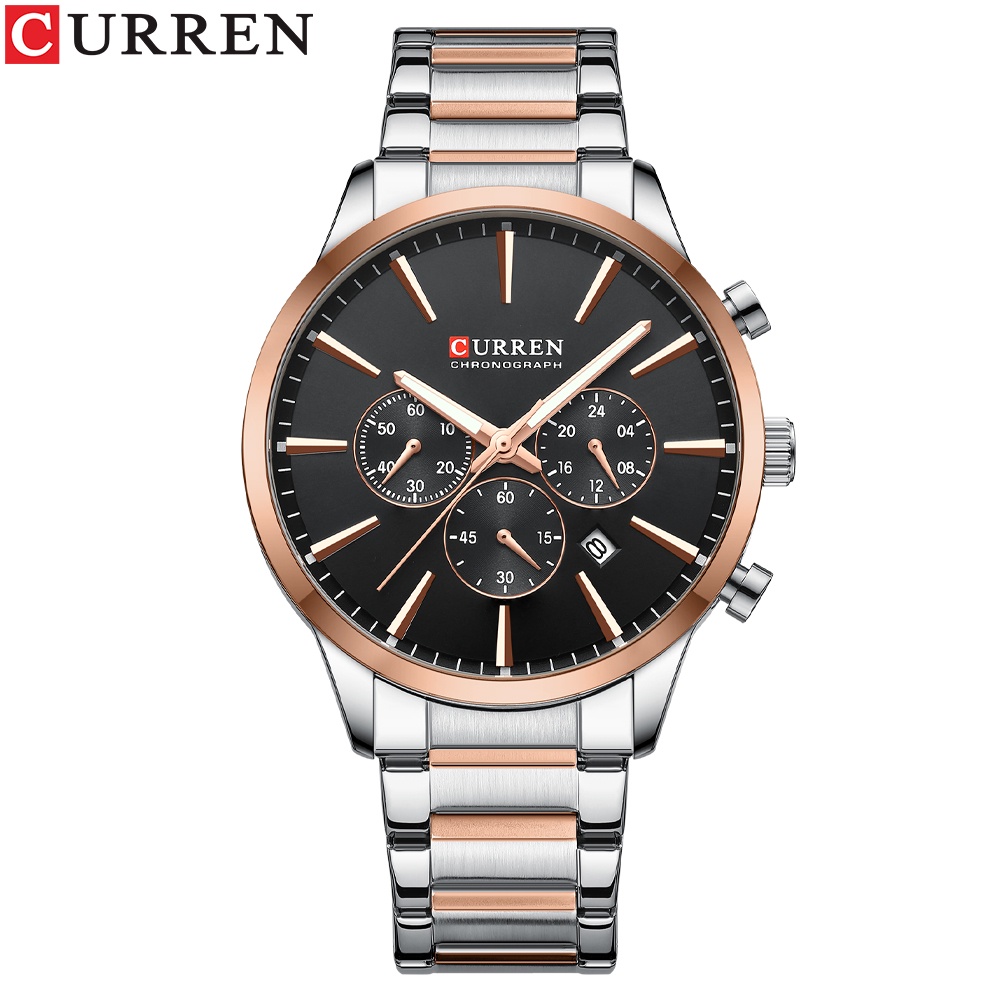 Relógio Cronógrafo Multifuncional CURREN Marca Luminoso Apontador Aço Inoxidável Moda Negócios Esportes Quartzo Impermeável 8435 X
