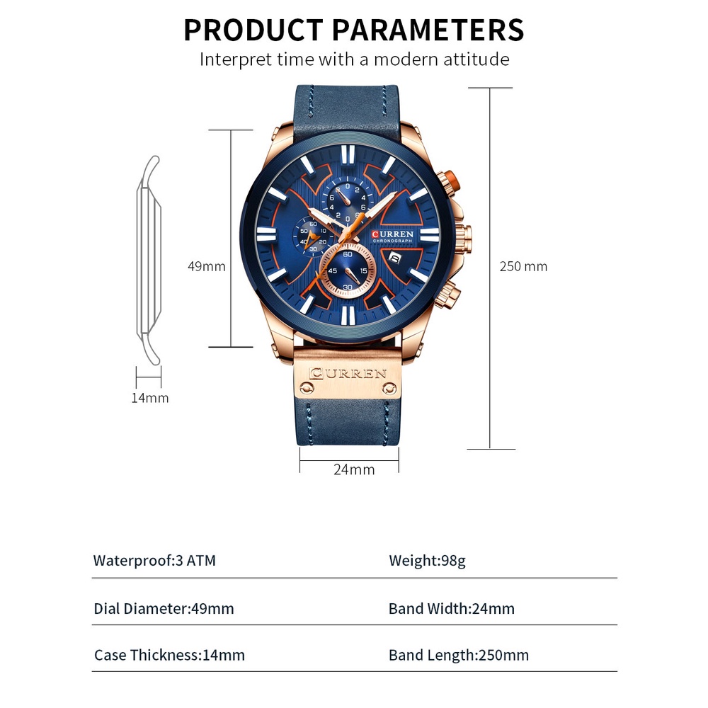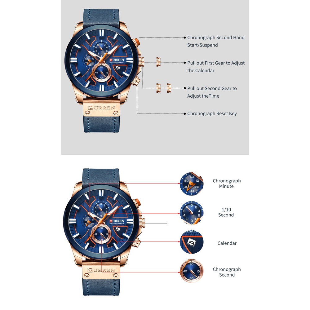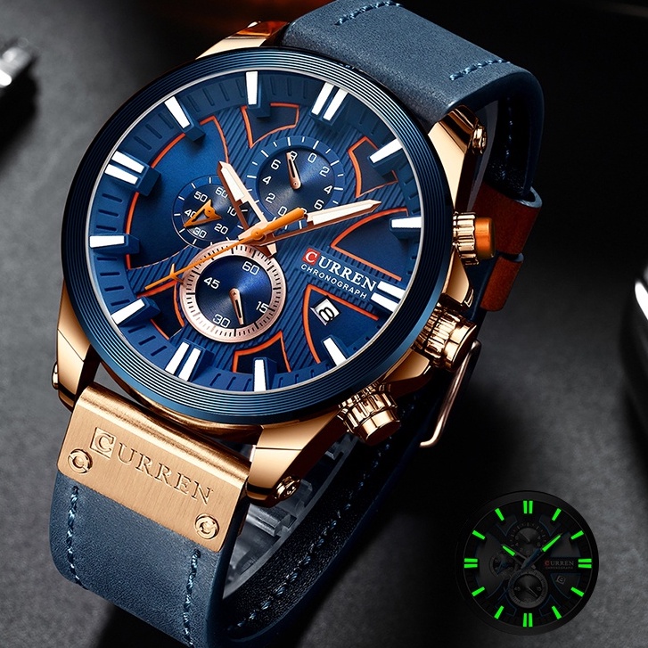 CURREN Relógio De Pulso Masculino Multifuncional Com Pulseira De Couro Original CR46LX