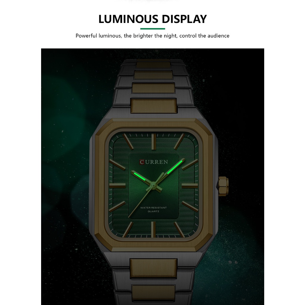 Novo Relógio CURREN Masculino Marca Original De Aço Inoxidável Quadrado Vintage Ponteiro Luminoso Discador Moda Casual Negócios Esportivo Quartzo Analógico À Prova D'água 8457 X