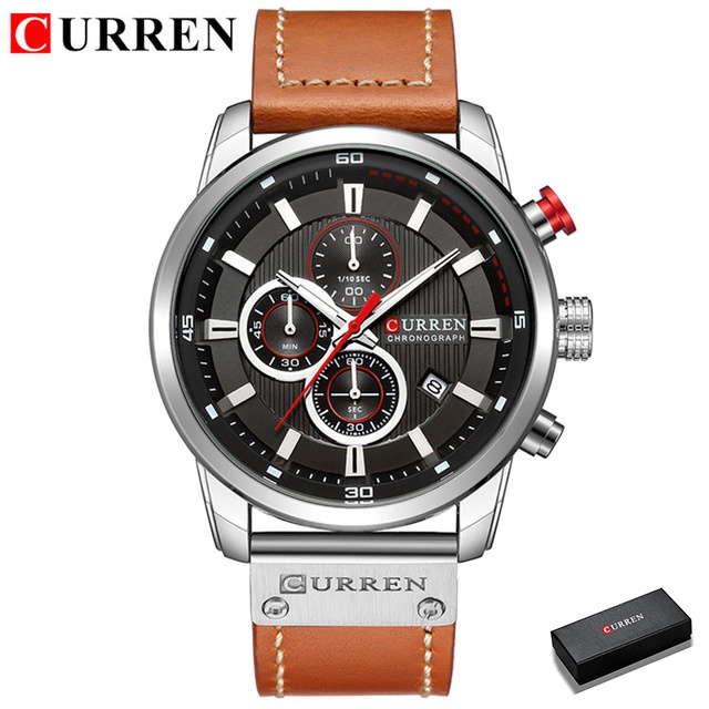 Relógio Cronógrafo Original CURREN Multifuncional De Couro Correia Casual Para Negócios Quartzo Esportivo À Prova D'água Com Caixa CR91L