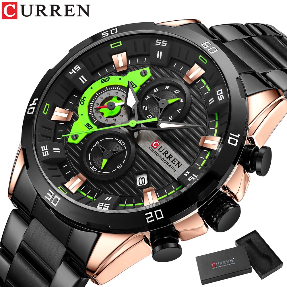 CURREN Relógio Dos Homens Marca De Luxo Original Multifuncional Cronógrafo Ponteiro Luminoso Grande Mostrador Do Aço Inoxidável Moda Casual Negócio Sports Quartz À Prova D'água Com Caixa CR02S