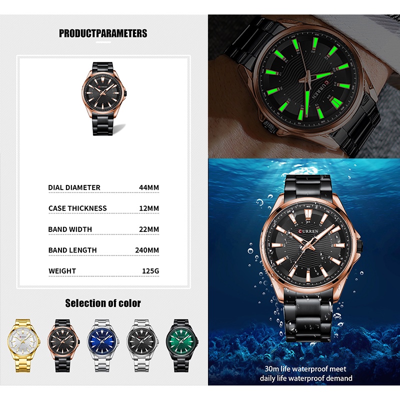 Relógio Masculino Casual CURREN Esportivo De Quartzo Em Aço Inoxidável À Prova D'água CR24SX