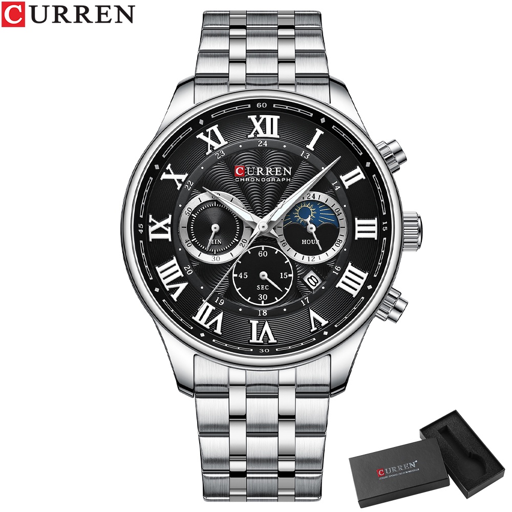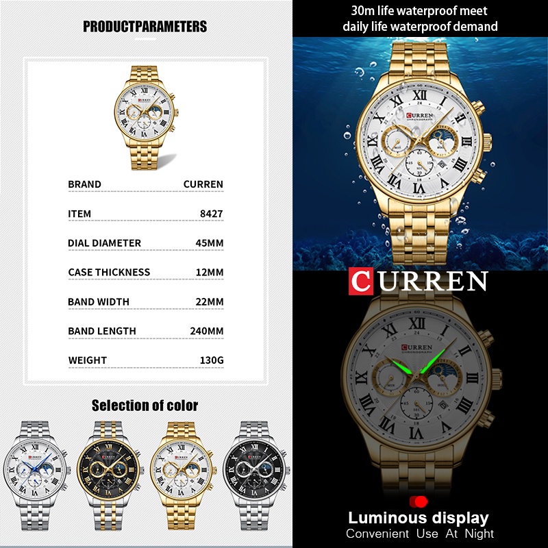 CURREN Relógios Masculinos Top Luxuoso Marca Nova Moda Aço Inoxidável Multifuncional Mãos Luminosas Negócios Casual Esportes Quartzo Impermeável Com Caixa 8427