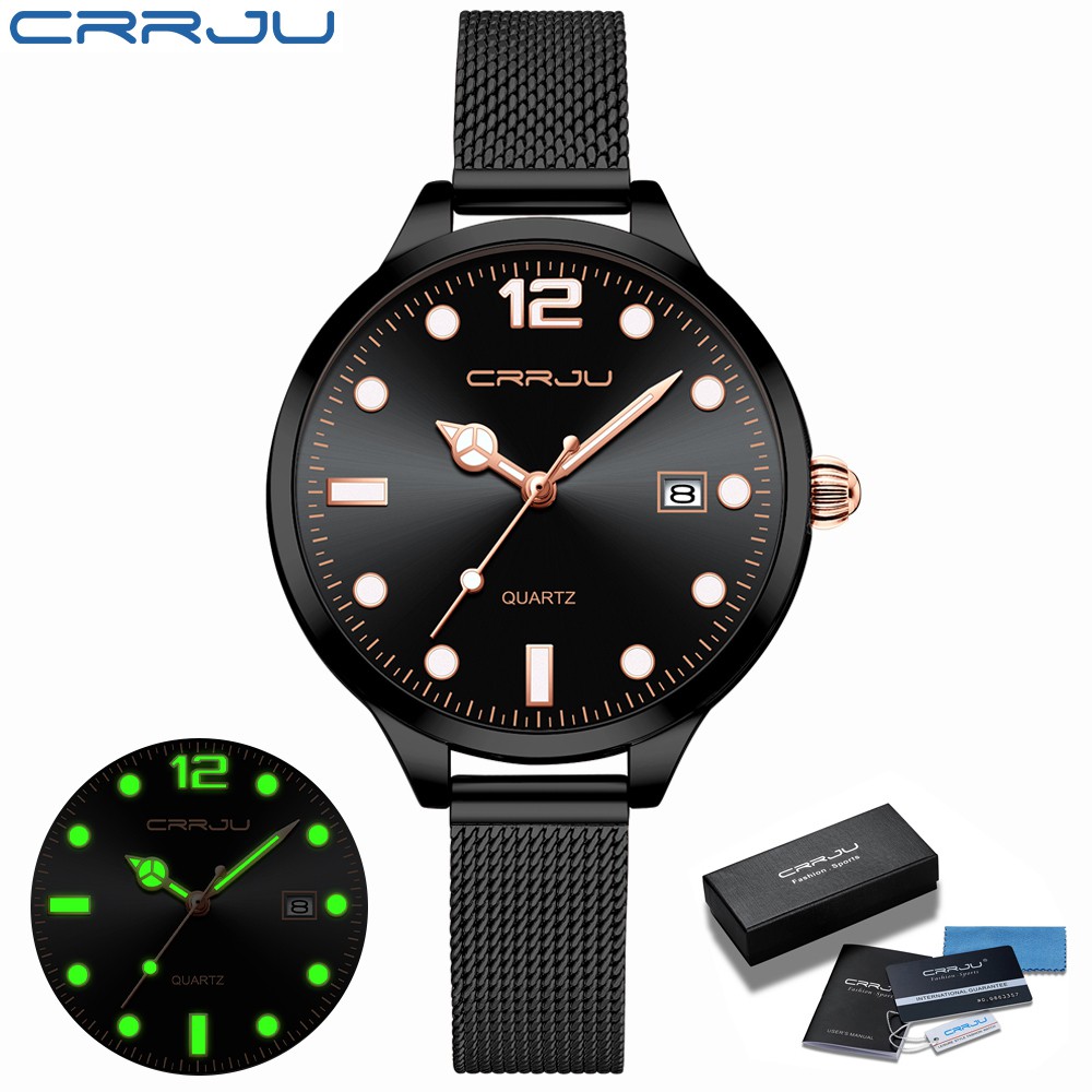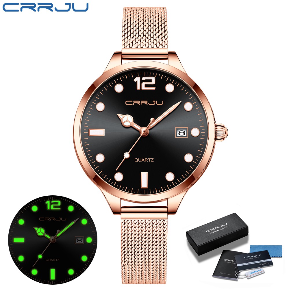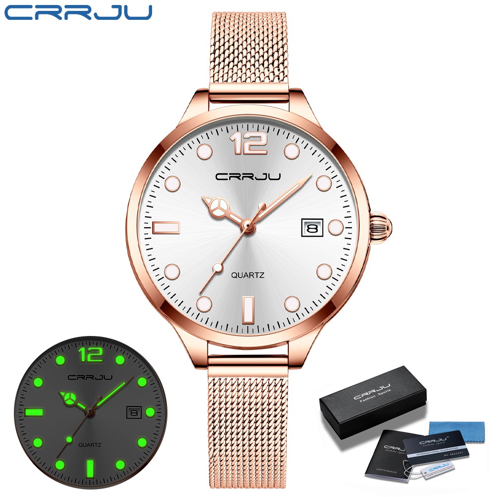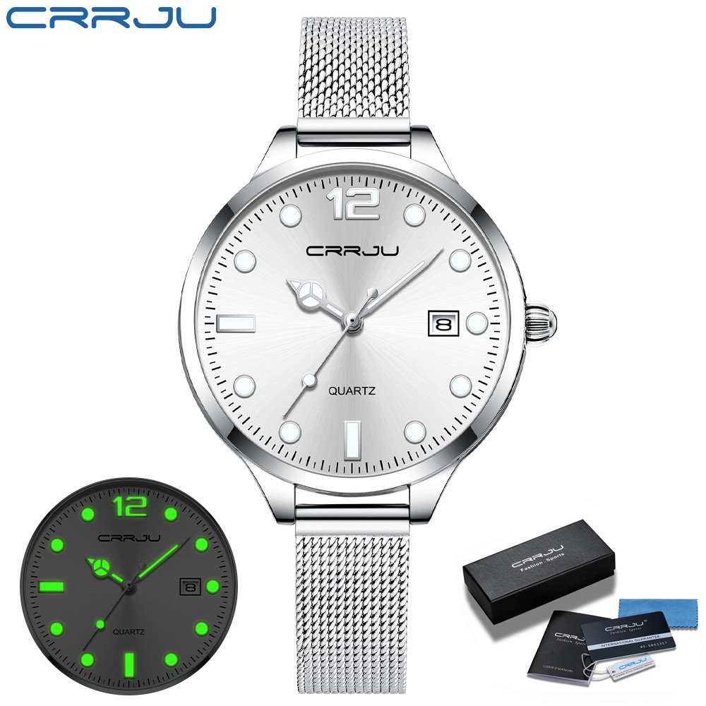 CRRJU Relógio De Quartzo Feminino Esportivo Luminoso À Prova D'água Em Aço Inoxidável 2187 M Com Caixa