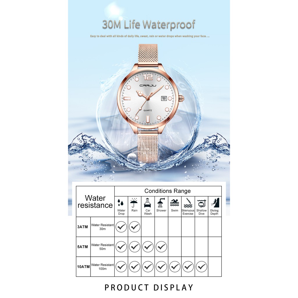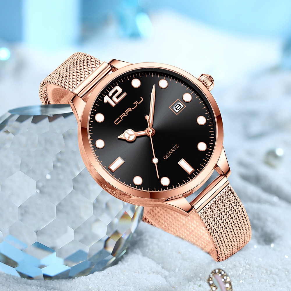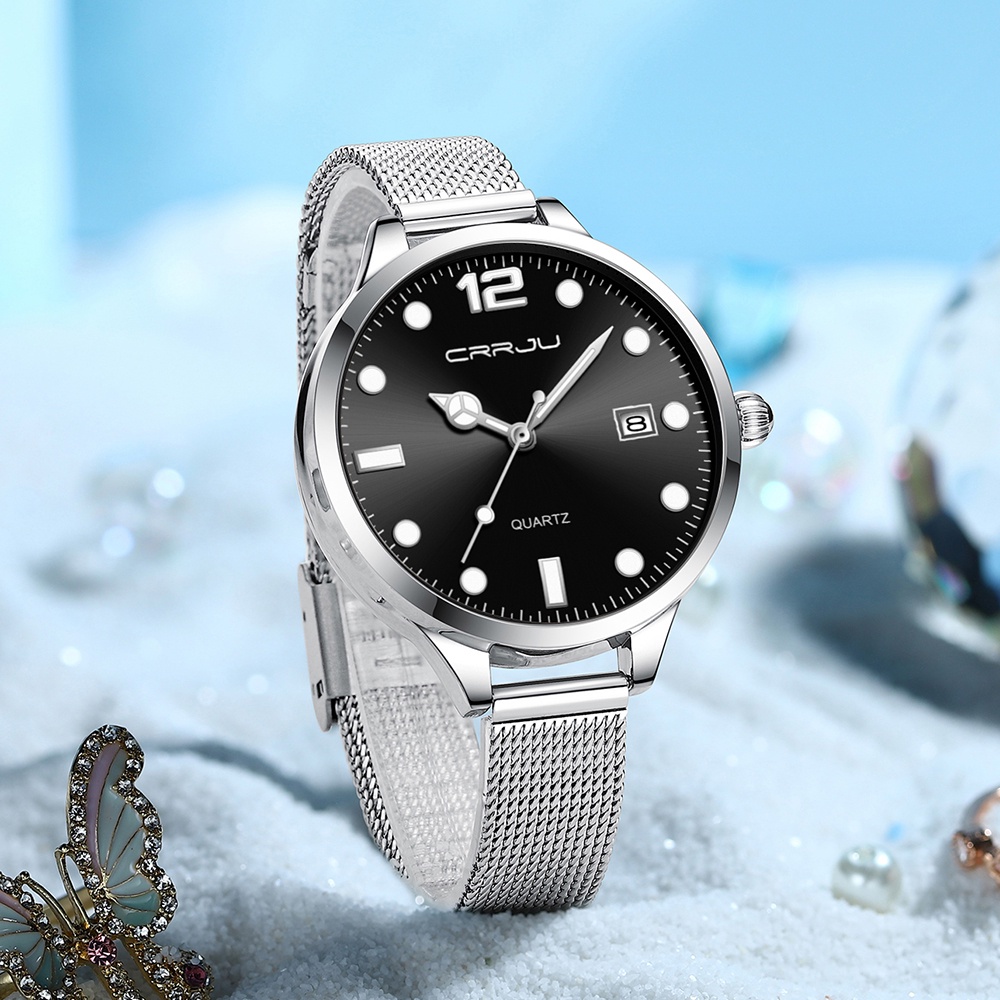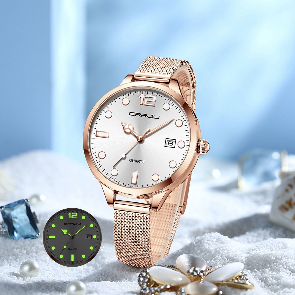 CRRJU Relógio De Quartzo Feminino Esportivo Luminoso À Prova D'água Em Aço Inoxidável 2187 M Com Caixa