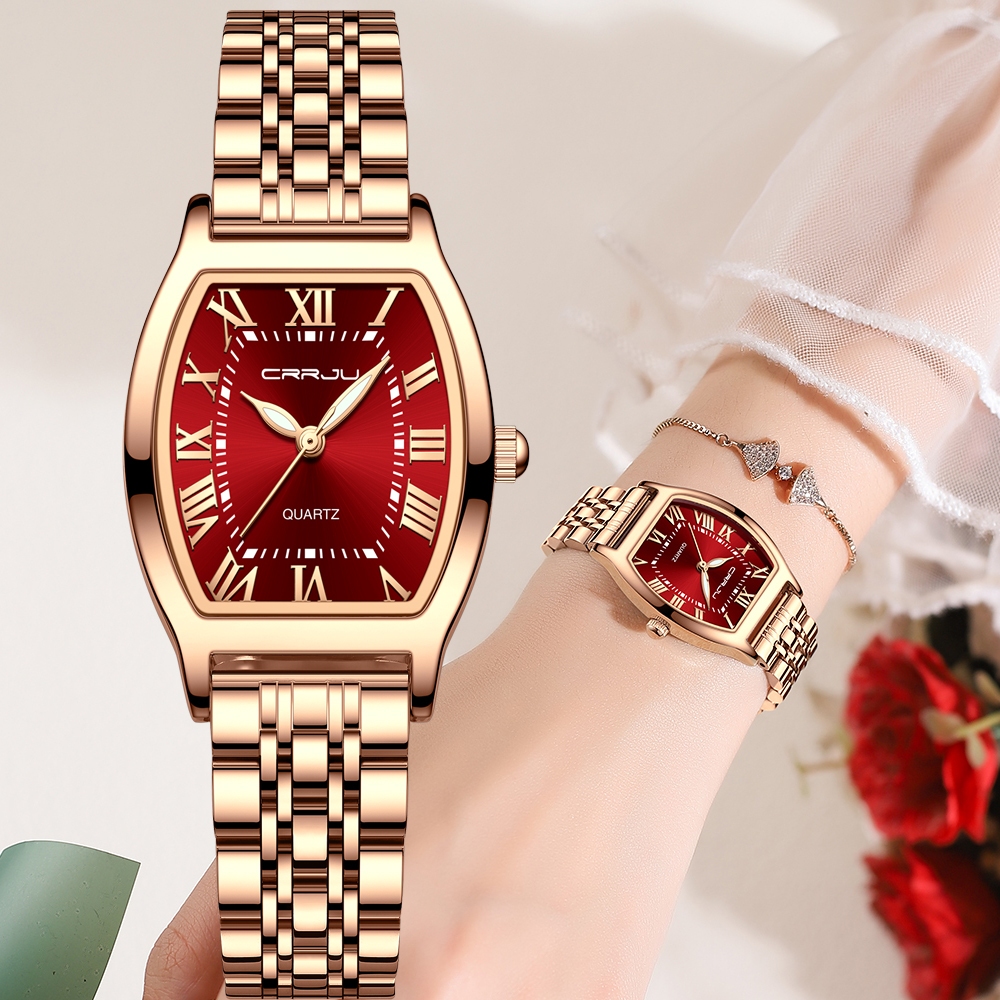 Relógio Original CRRJU Mulher Aço Inoxidável De Alta Qualidade Rectangular Design Criativo 27CM Discagem Moda