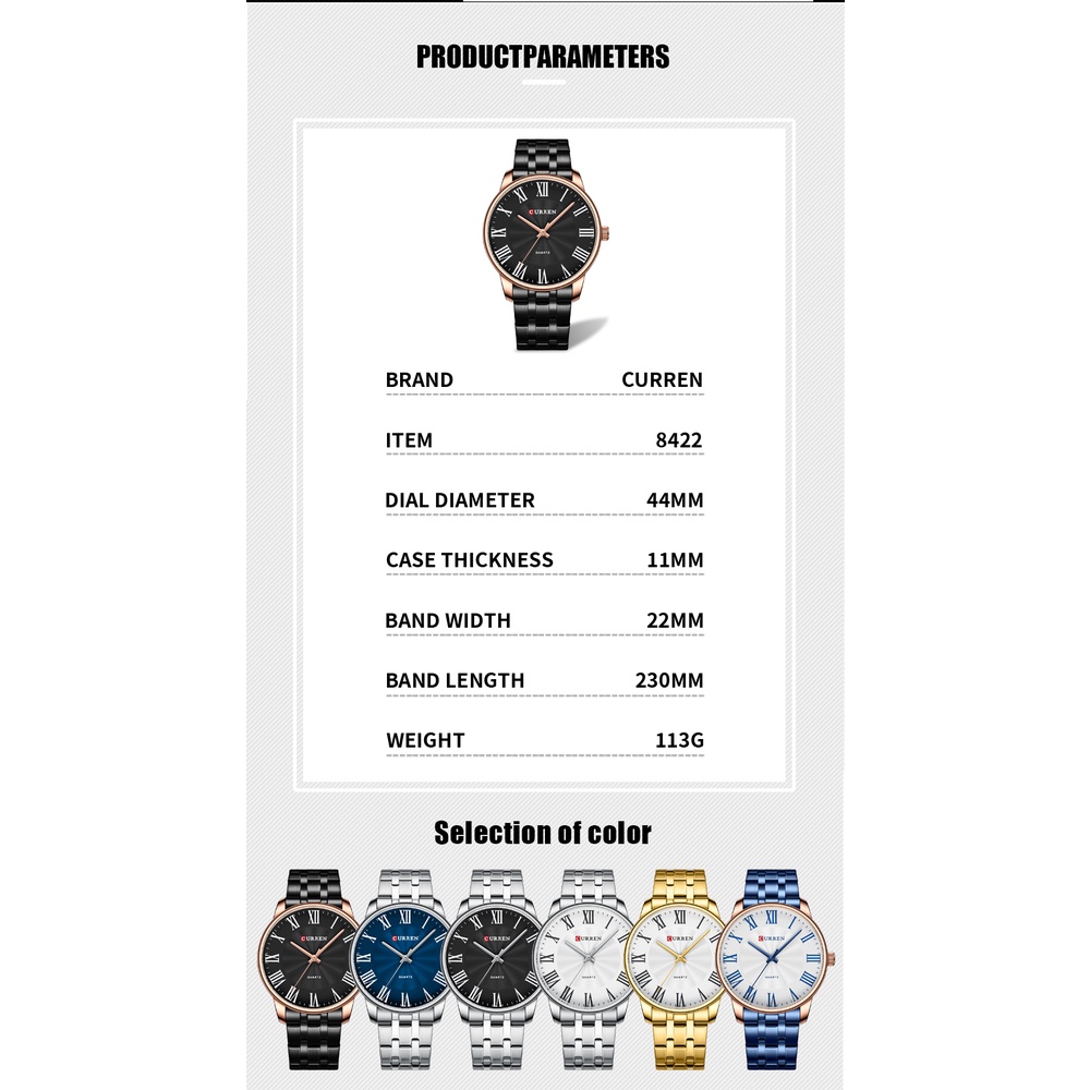 CURREN Relógio Dos Homens Originais De Luxo Da Marca De Moda Clássico Versátil Simples Esportes Casuais Quartzo De Aço Inoxidável À Prova D'água 8422 X Sem Caixa