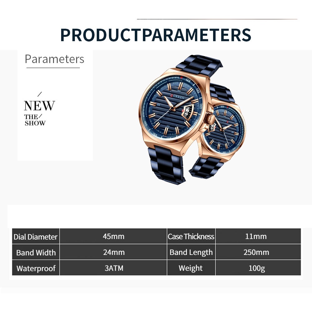 CURREN Relógio Masculino Original/Simples/Retrô/Aço Inoxidável/Calendário/Moderno/Casual/Esportivo/Executivo/À Prova D'água CR75SSX
