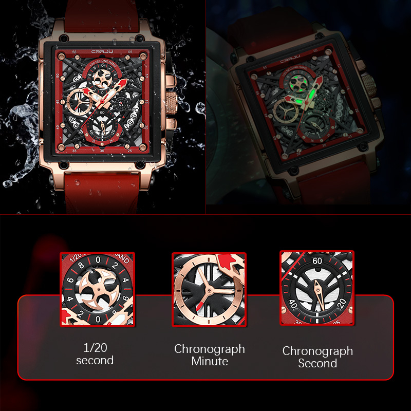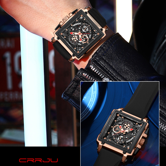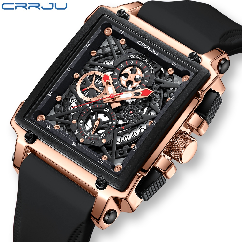 CRRJU Novo Relógio Masculino Marca Original Cronógrafo Genuíno Ponteiros Luminosos Quadrados Moda Retro Discagem Correia De Silicone Casual Negócios Esportivos Quartzo Resistente À Água 2312 X