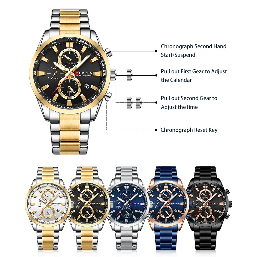 Novo Relógio CURREN Original Marca Relógios Masculinos De Aço Inoxidável Multifuncional Cronógrafo Business 8445 X