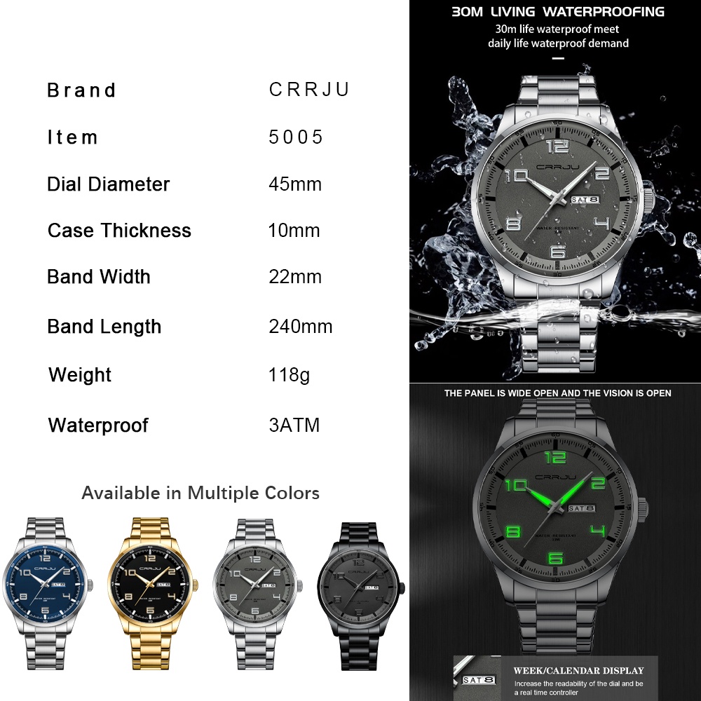 CRRJU Relógio Masculino Marca Original Top Luxo Mãos Luminosas Design Criativo Aço Inoxidável Casual Esportes Quartzo Impermeável 5005 X