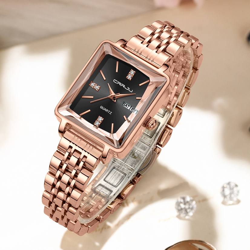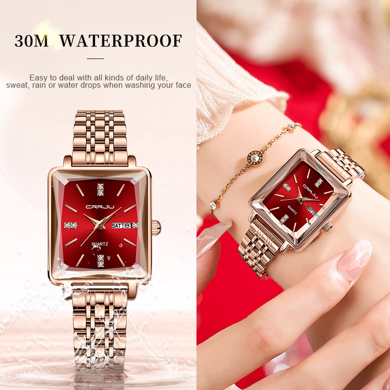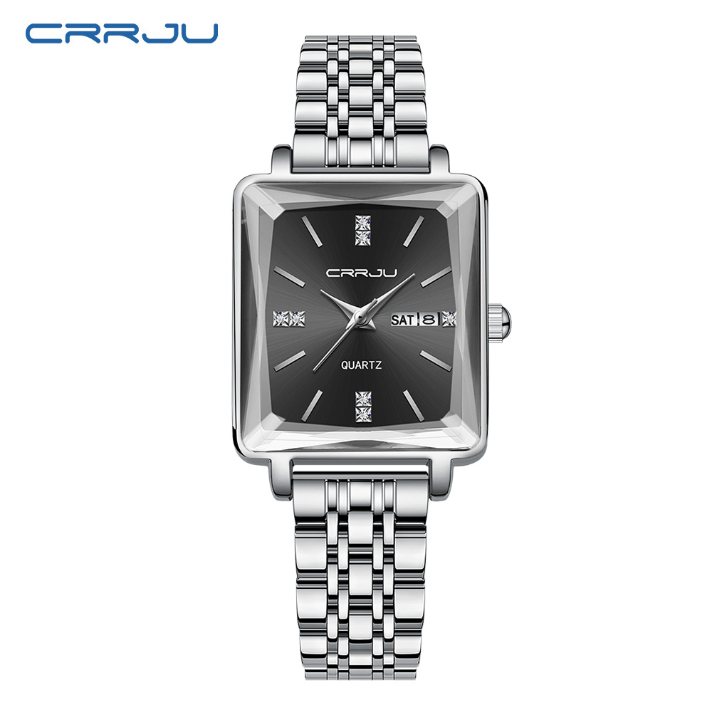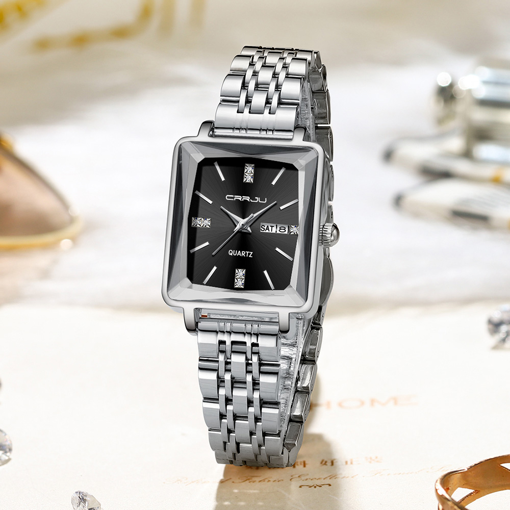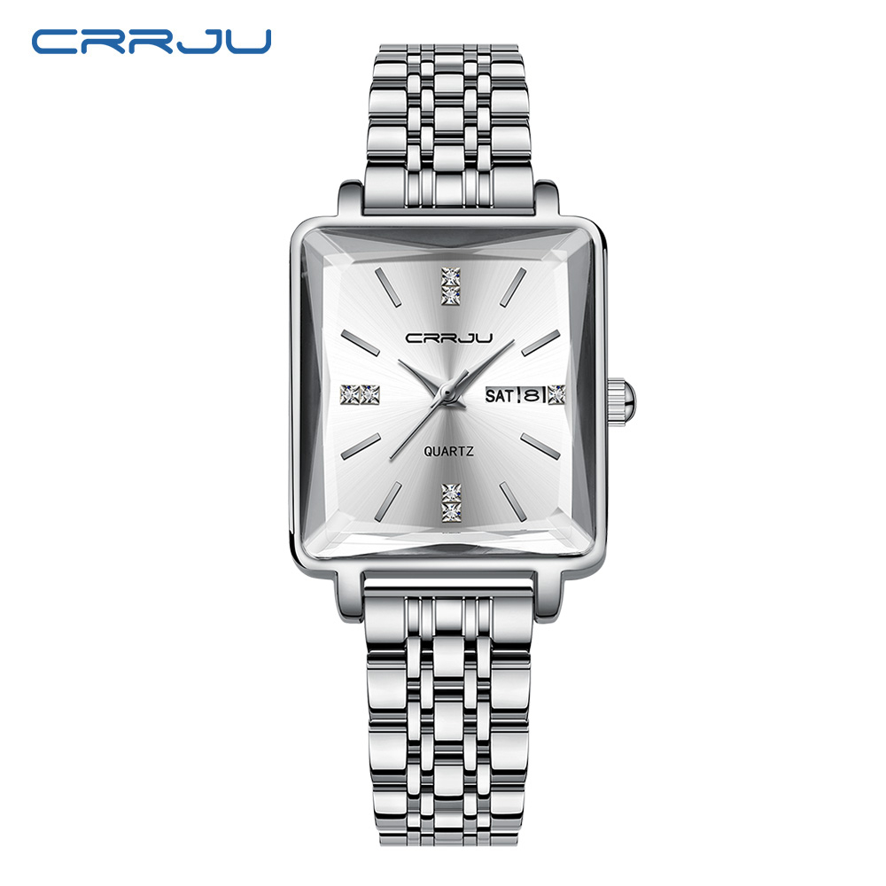 CRRJU Relógios Femininos Marca Original Quadrado Calendário De Luxo Fashion Casual Business Quartz Waterproof 5012 X