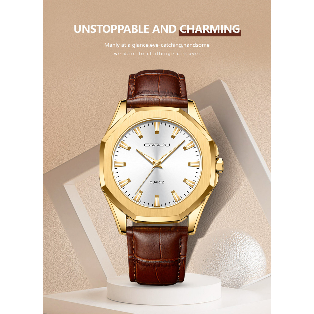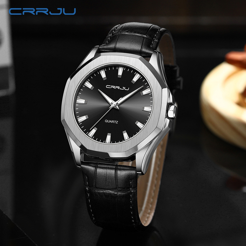 CRRJU Relógios Masculinos Originais Marca De Alta Qualidade Ponteiro Luminoso Discador De Couro Correia Moda Casual Simples Desportiva Quartzo À Prova D'água 5015
