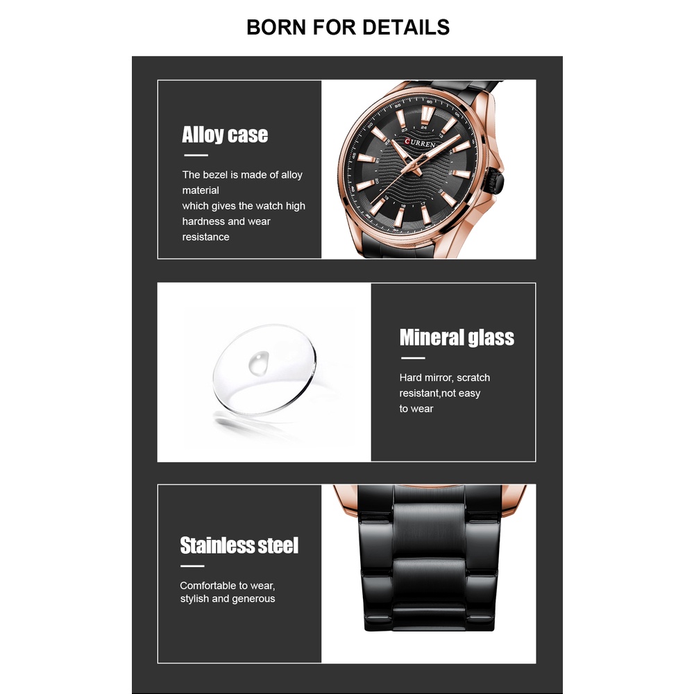CURREN Relógio Moda Masculina Retro Simples Discagem Casual Negócios Aço Inoxidável 8424