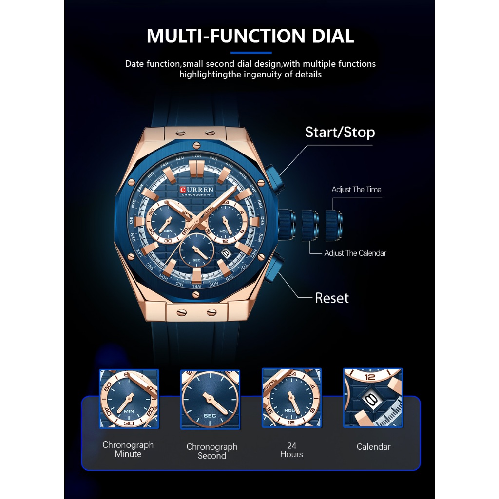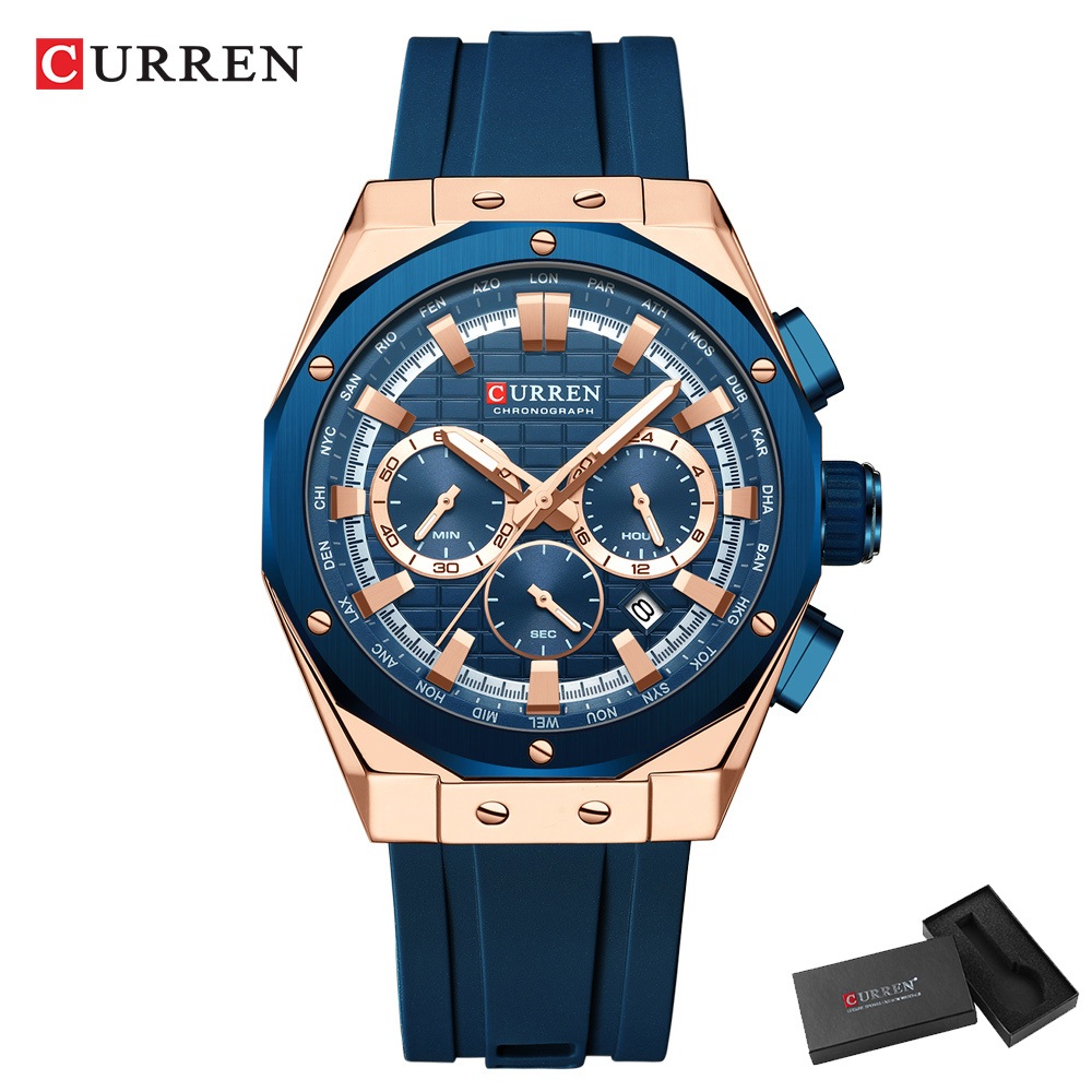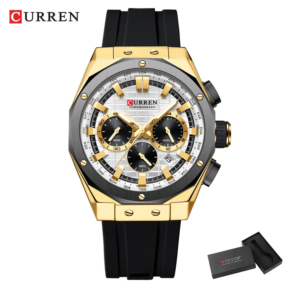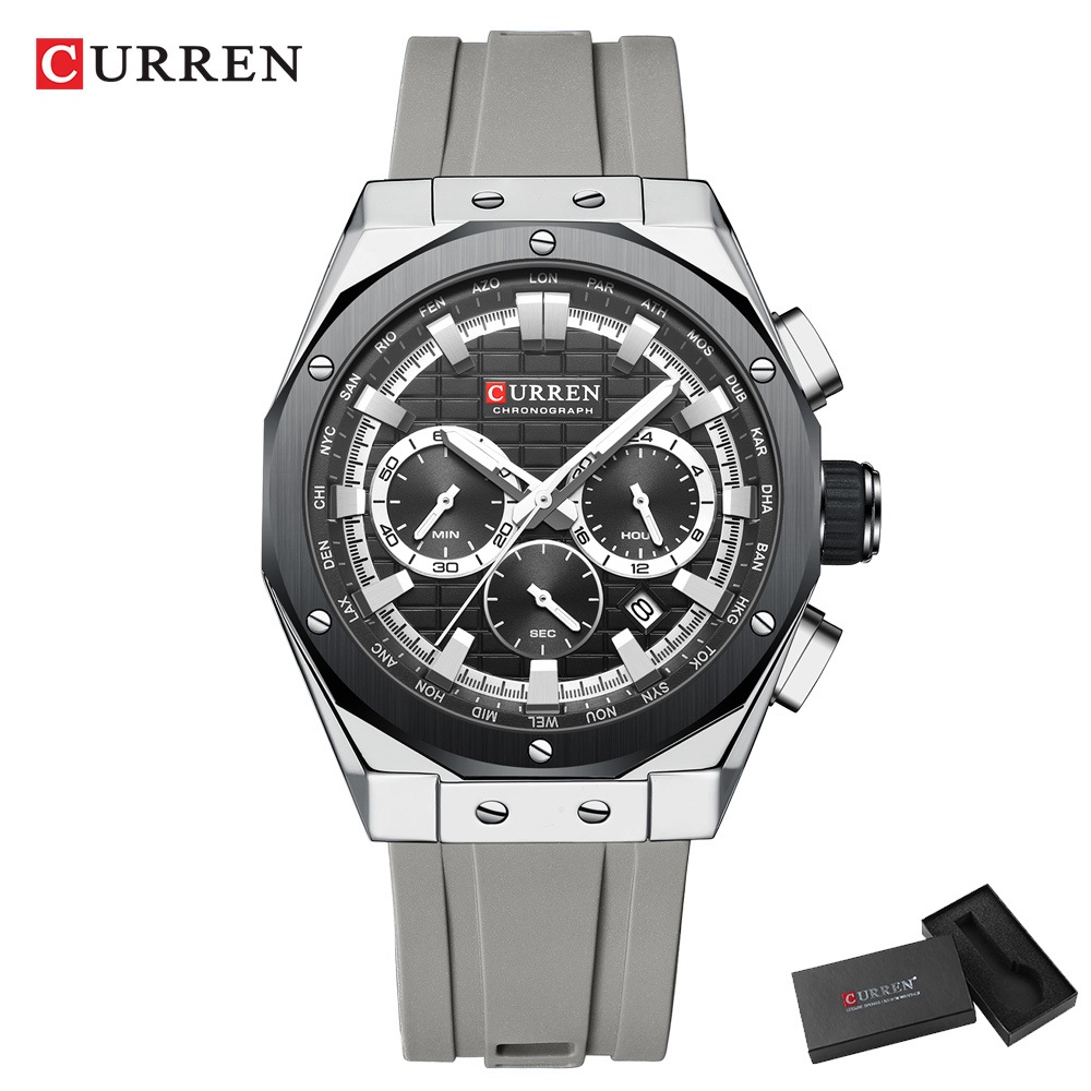 CURREN Relógio Masculino Marca Original Cronógrafo Multifuncional Código À Prova D'água Ponteiros Luminosos Correia De Silicone Lazer Empresarial Quartzo Analógico 8464