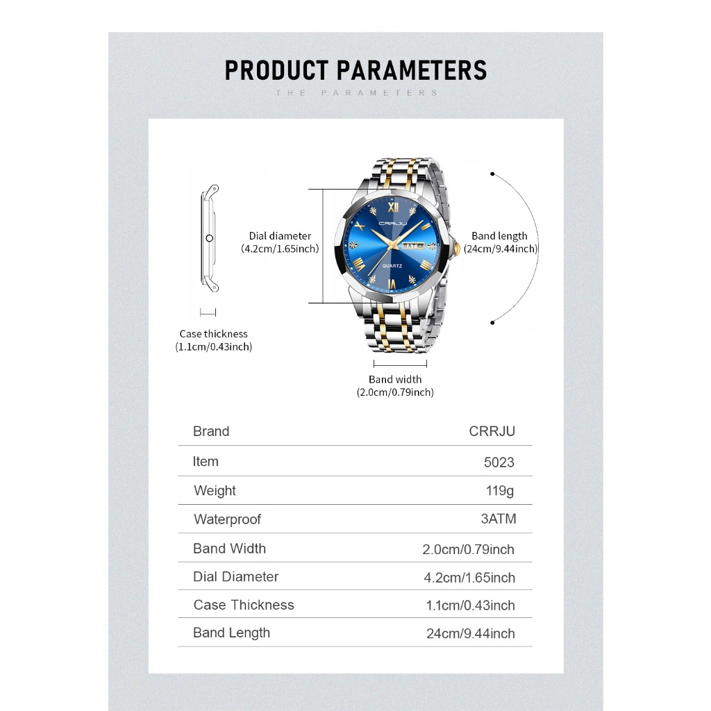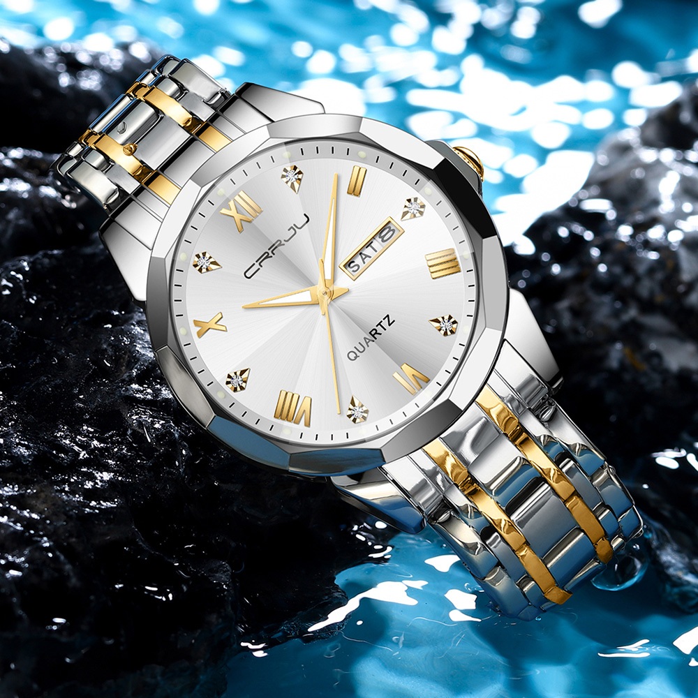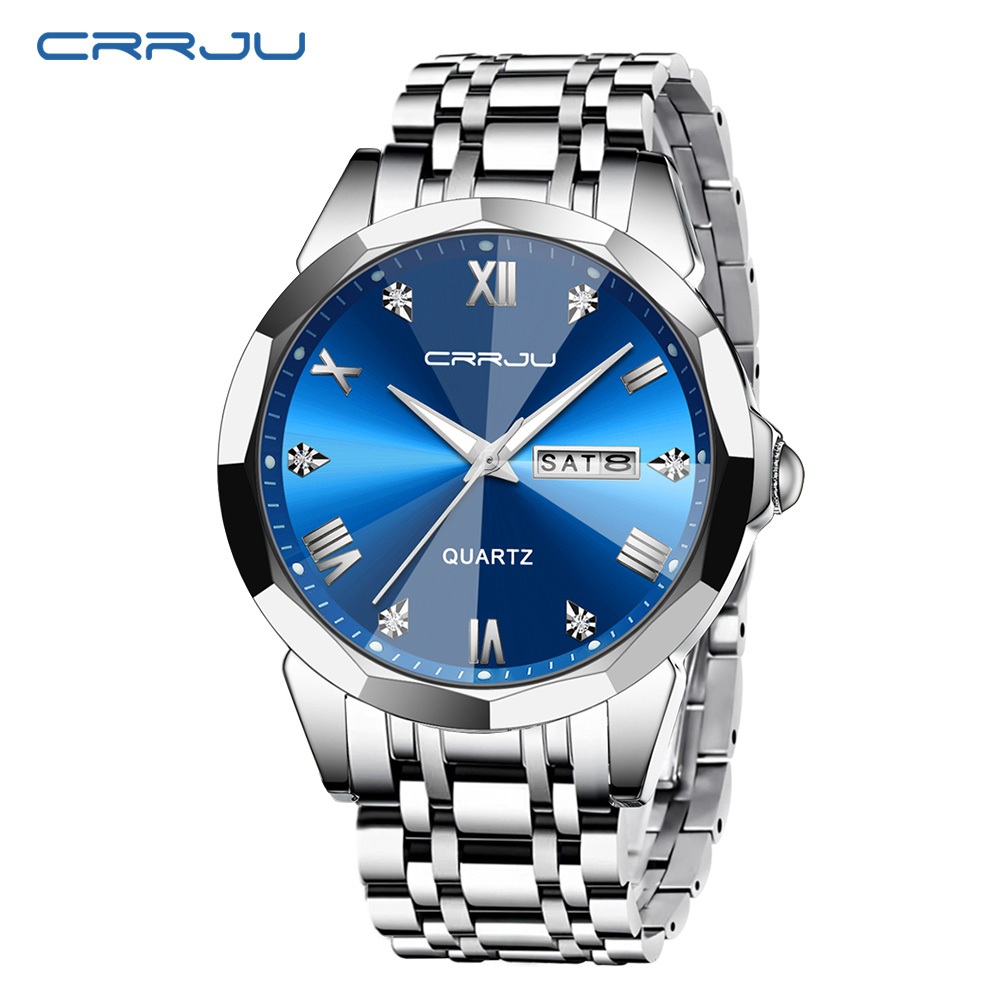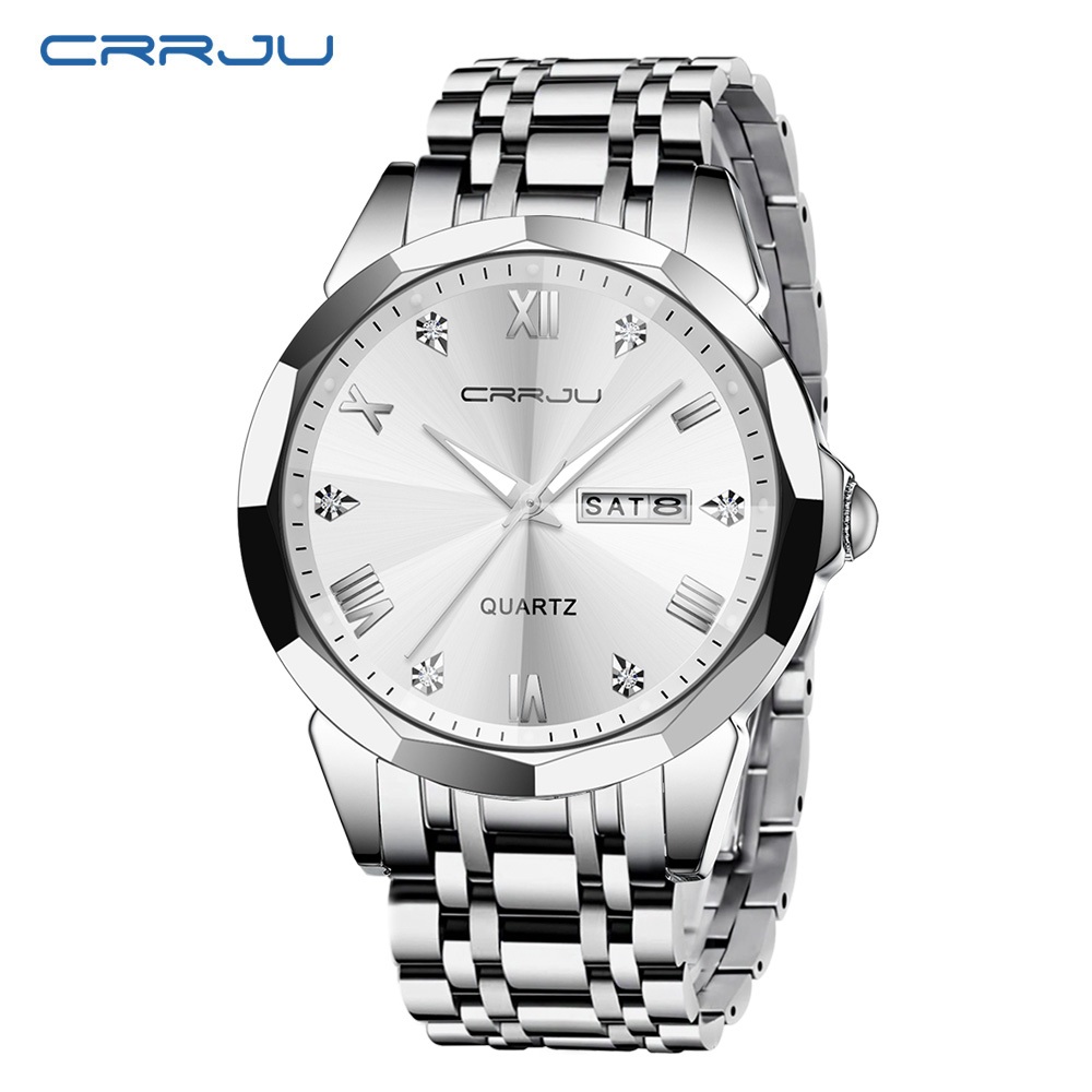 CRRJU Relógio Masculino Nova Marca Original Ponteiros Luminosos De Aço Inoxidável Genuíno Moda Simples Negócios De Lazer Quartzo Analógico À Prova D'água 5023 X