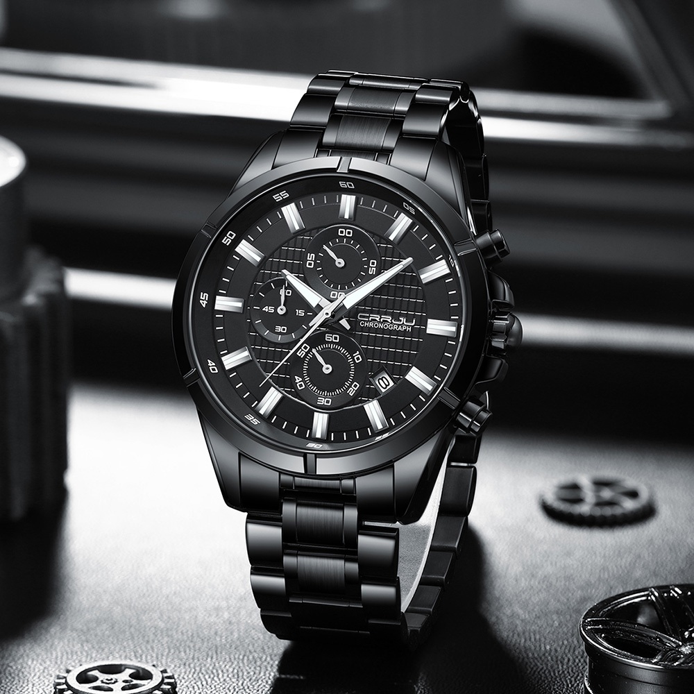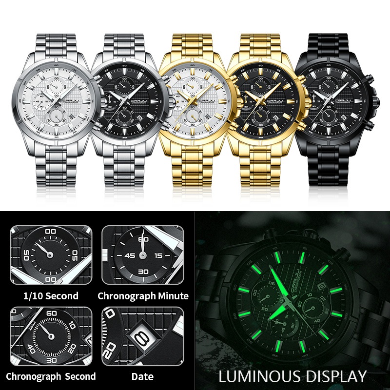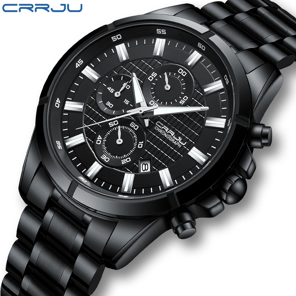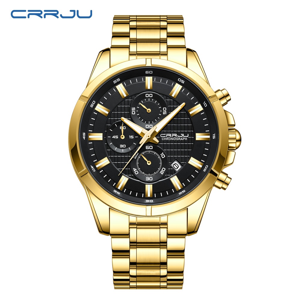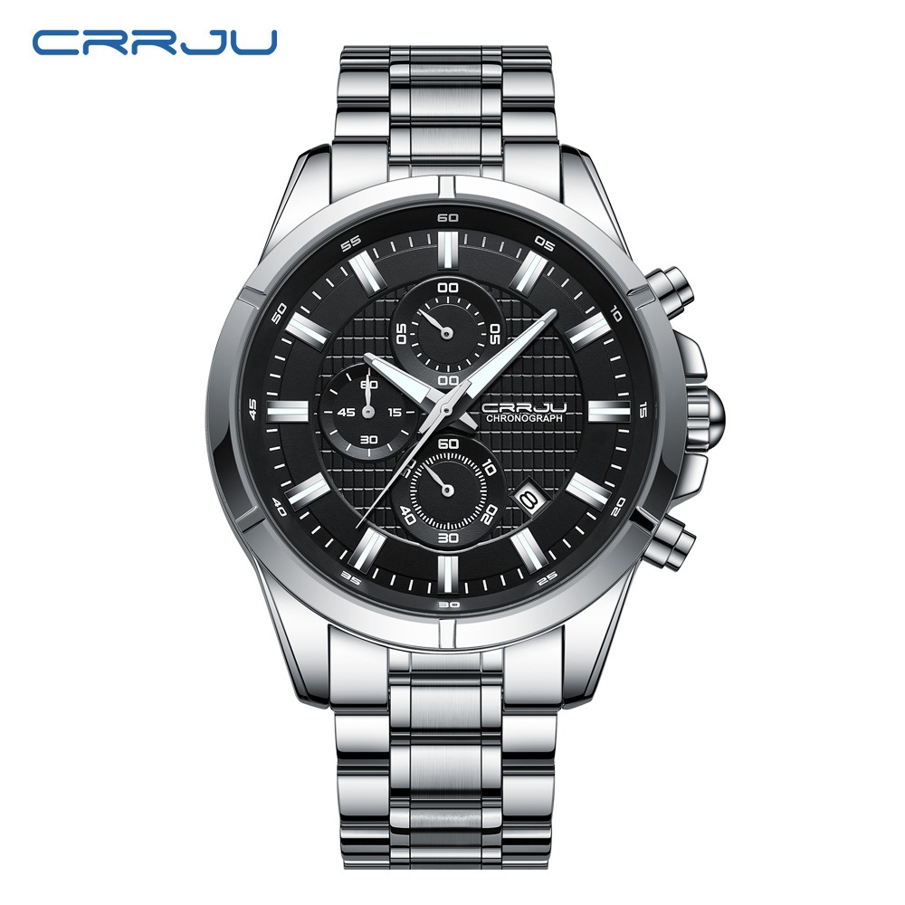 CRRJU Relógio Masculino Marca Original Autêntico Novo Cronógrafo Multifuncional Mãos Luminosas Aço Inoxidável Luxo Empresarial Quartzo À Prova D'água 2308 XS