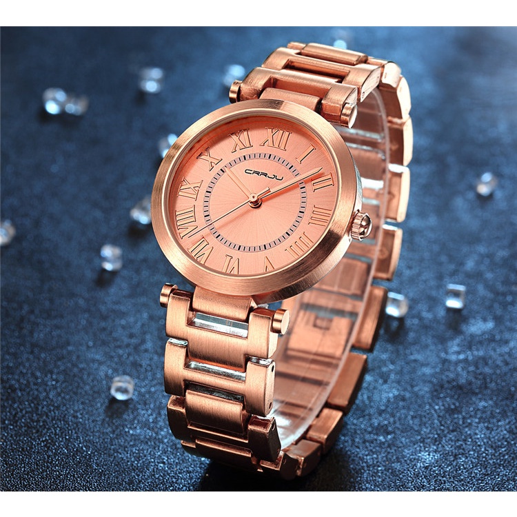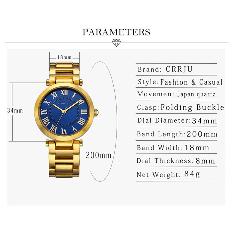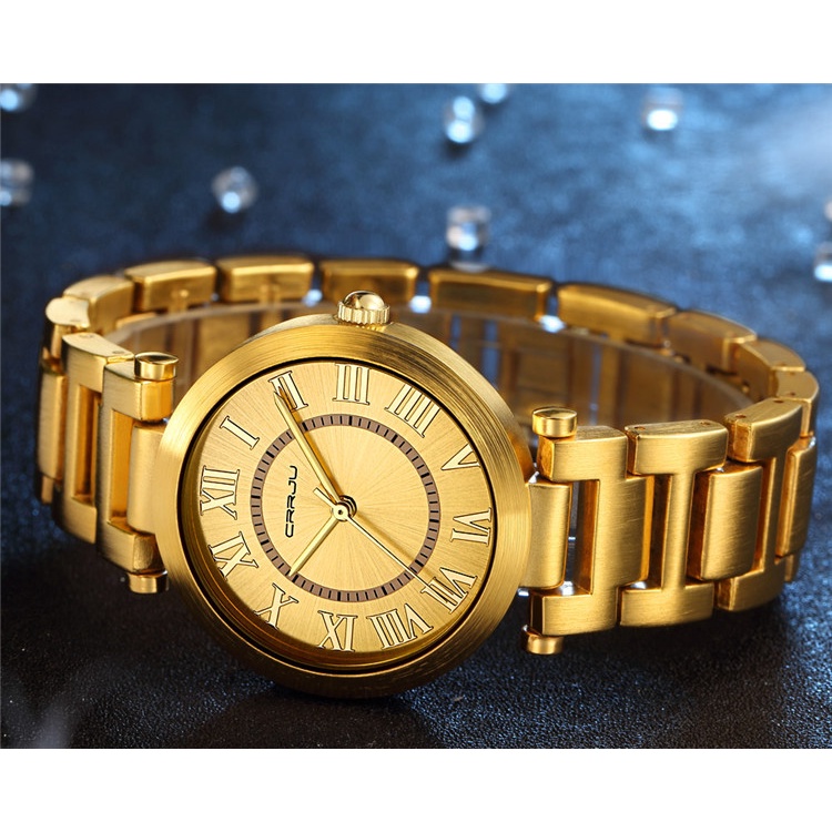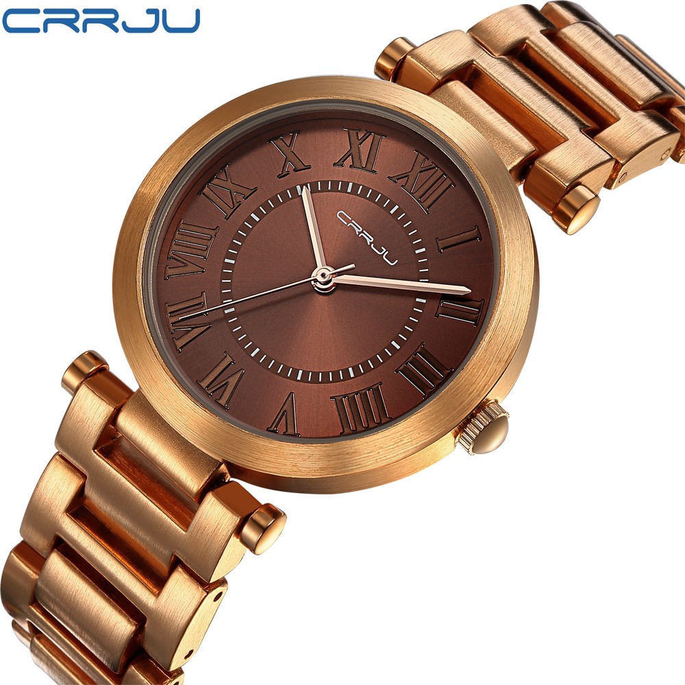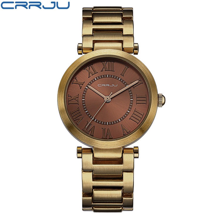 Relógios Femininos CRRJU Marca De Luxo Gold Fashion Casual Aço Inoxidável Quartzo A Prova D'água 2123 S