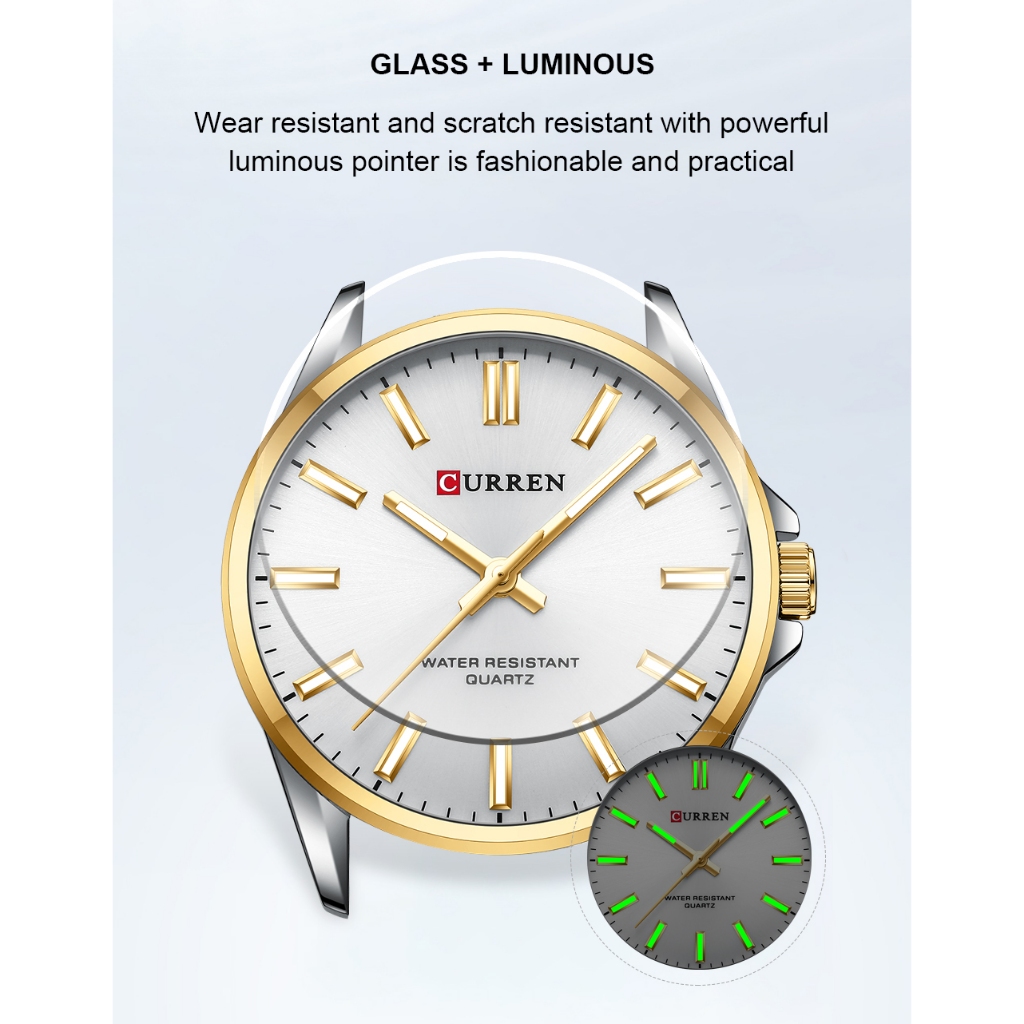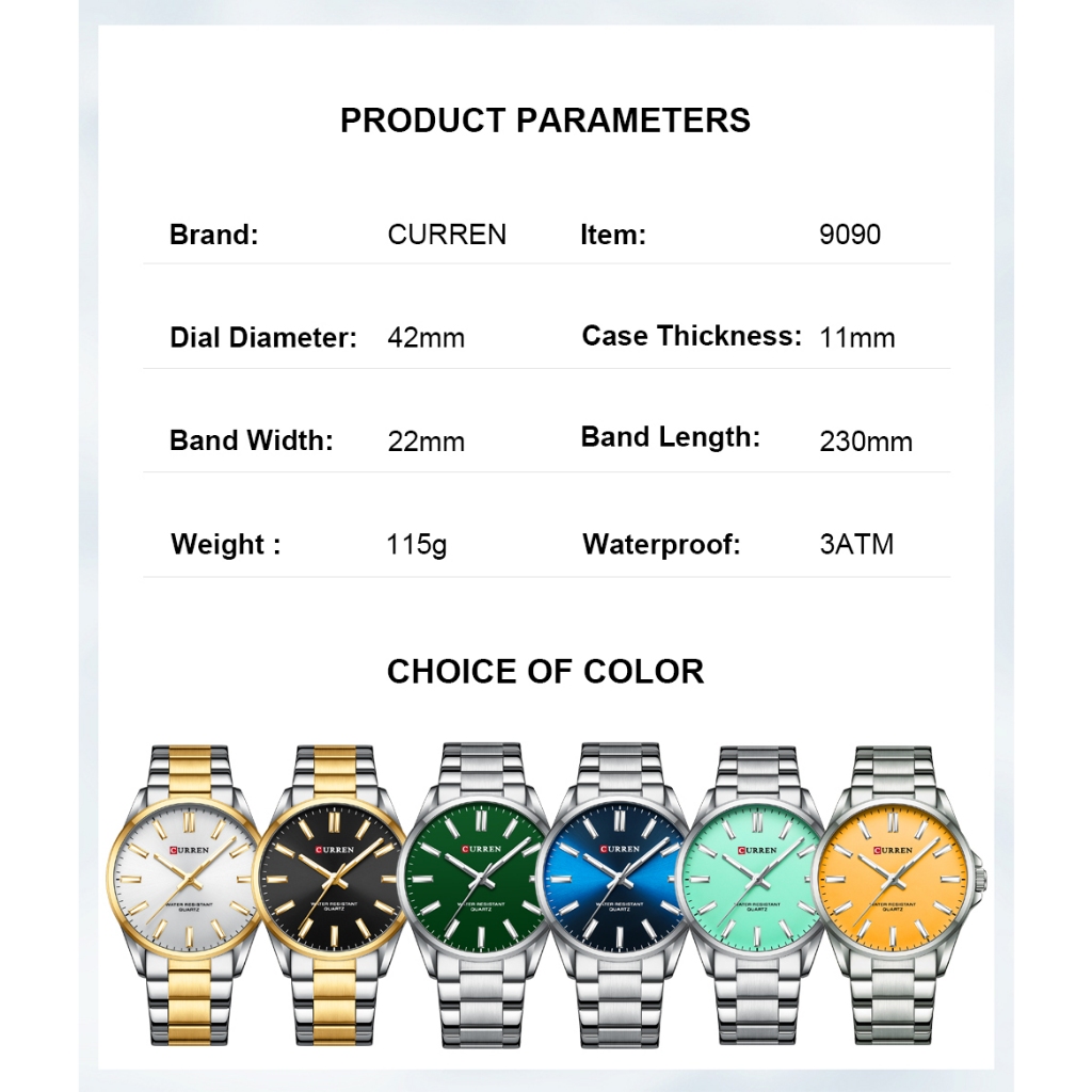 CURREN Relógio De Casal De Marca Original De Aço Inoxidável Quartzo Luminoso À Prova D'água 9090