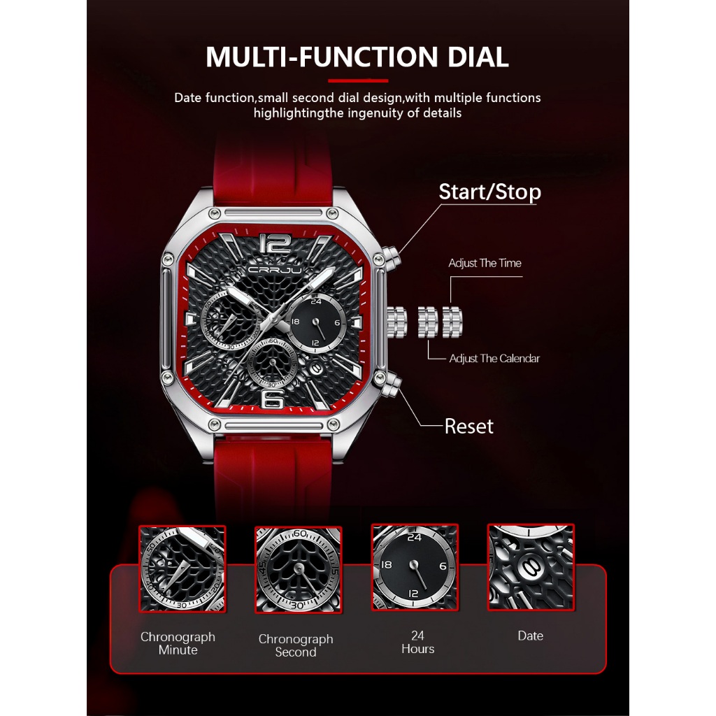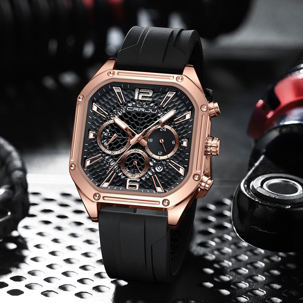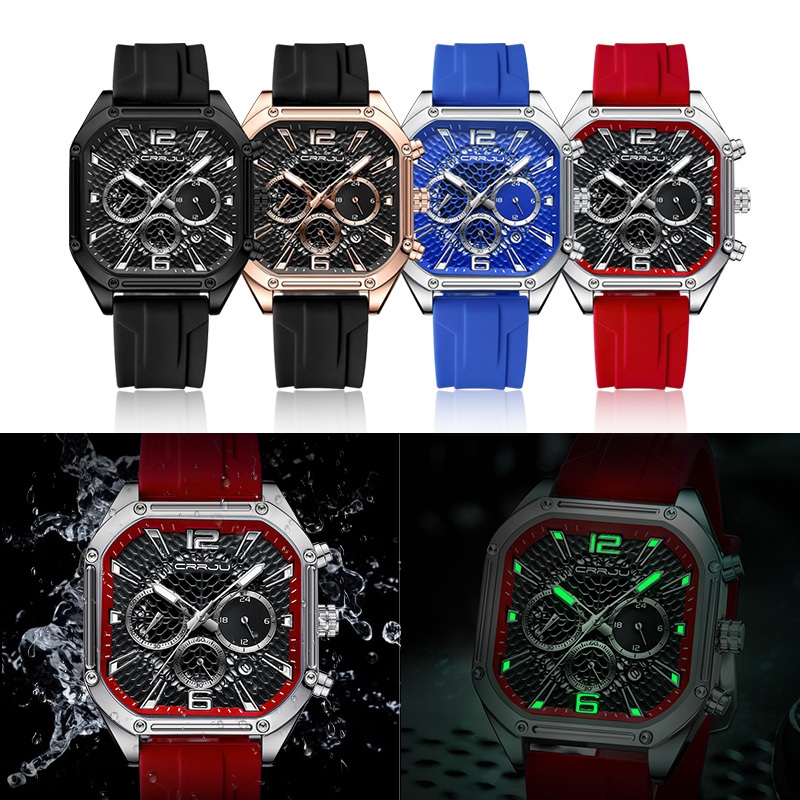 CRRJU Relógio Masculino Original Top Marca De Luxo Cronógrafo Quadrado Retro Dial Pulseira De Silicone Moda Casual Negóc