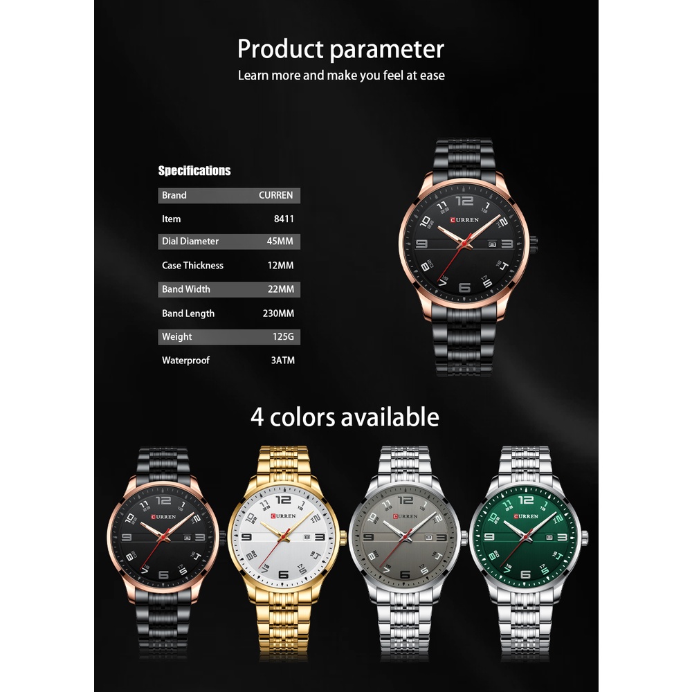 Relógios Masculinos CURREN Marca Original De Luxo Moda Casual Simples Esportes Empresariais De Aço Inoxidável Quartzo Impermeável Com Caixa 8411