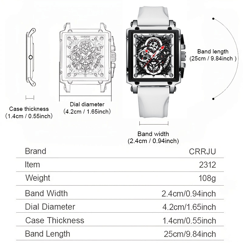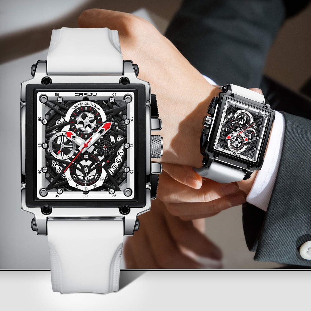 CRRJU Relógio Masculino Original À Prova D'água Com Mostrador Quadrado Pulseira De Silicone Cronógrafo Luminoso Quartzo