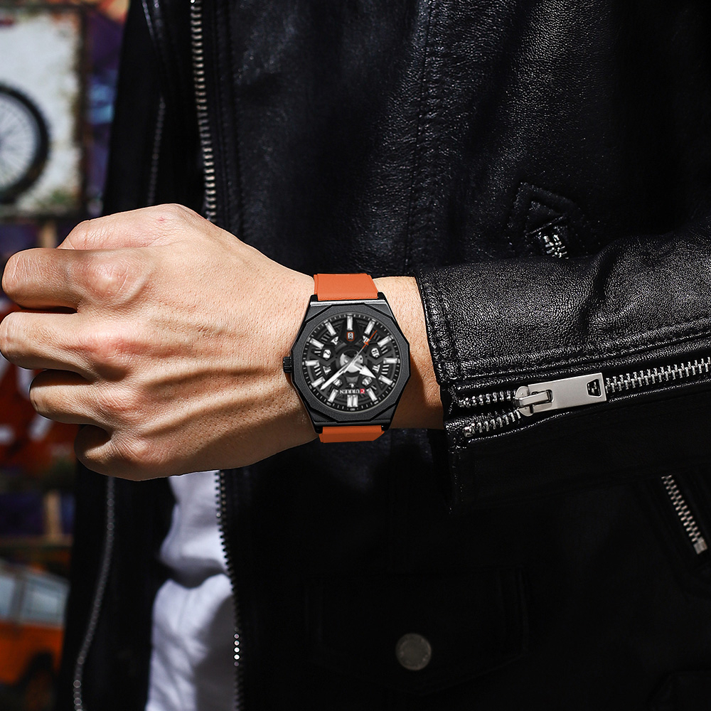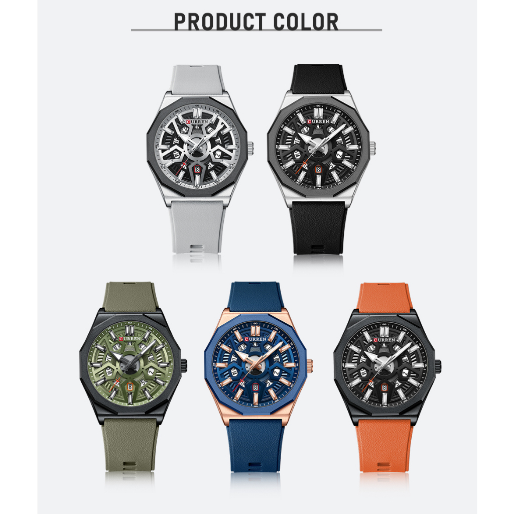 Relógios Masculinos CURREN Ponteiro Luminoso Original Data Discagem Silicone Correia Fashion Business Casual Esportes Militares Quartzo Impermeável 8437 XC